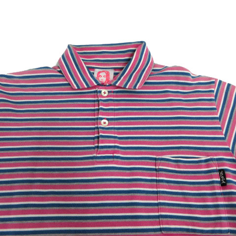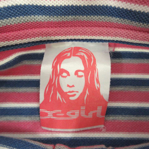 エックスガール x-girl ポロシャツ 胸ポケ 半袖 コットン マルチボーダー ピンク系 ブルー系 青系 ホワイト 白 グレー レディース