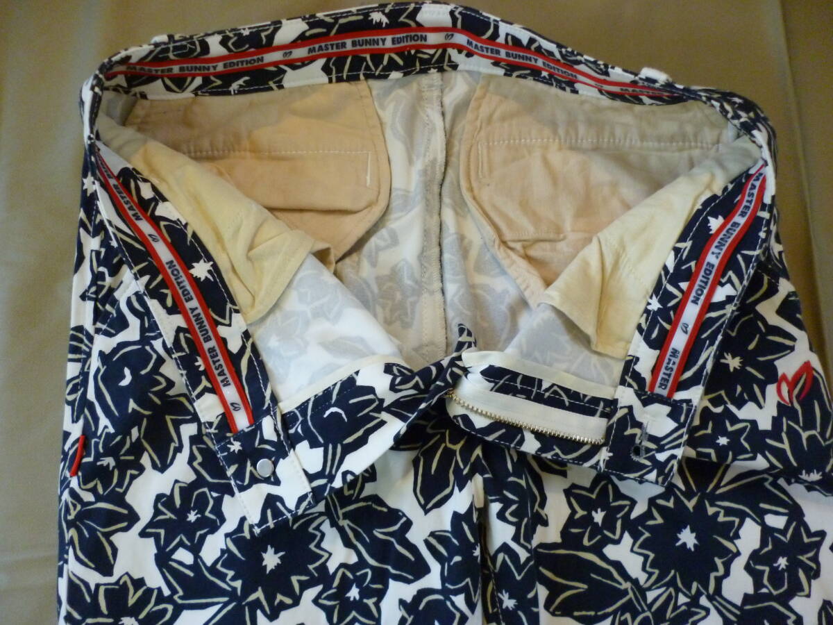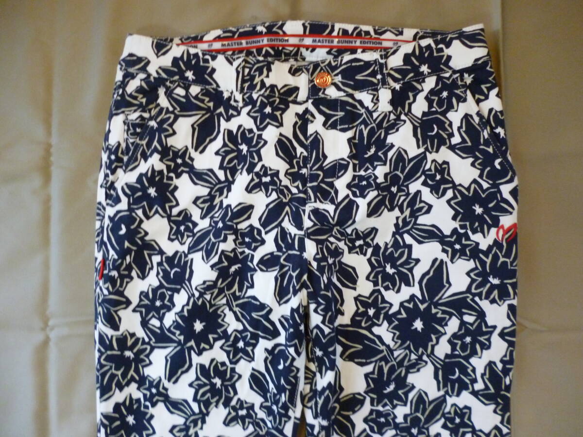 919-49♀:MASTERBUNNYEDITION マスターバニーエディーション 総柄 スキニーパンツ ゴルフ スポーツウエア size.1 色.白×黒花柄