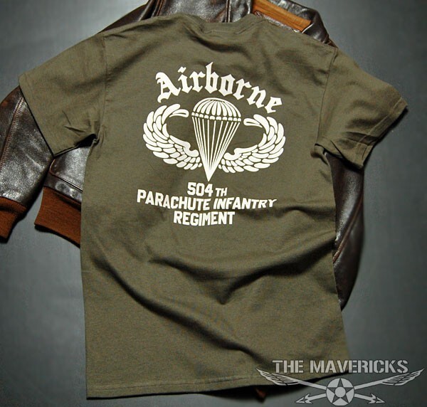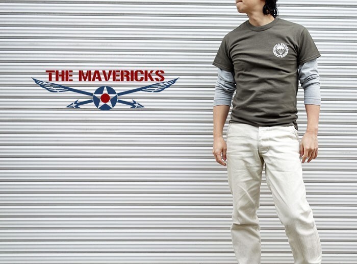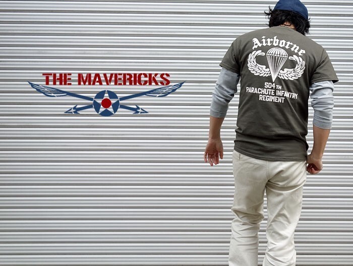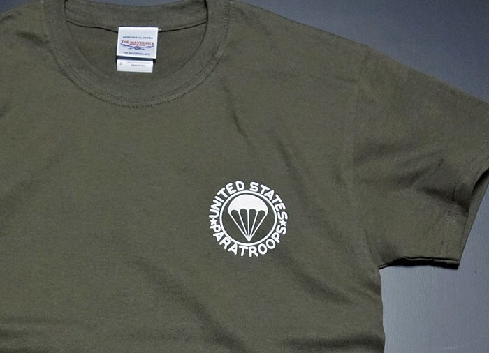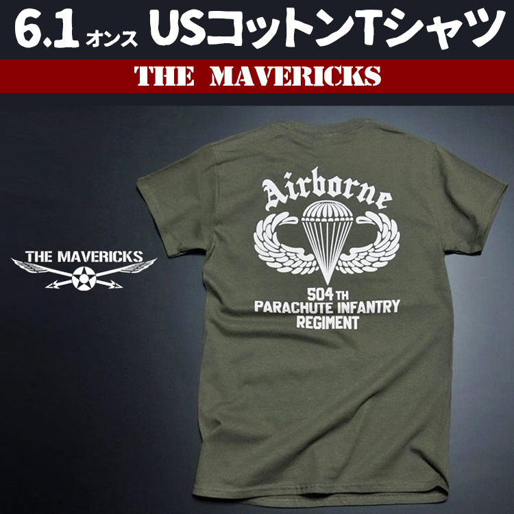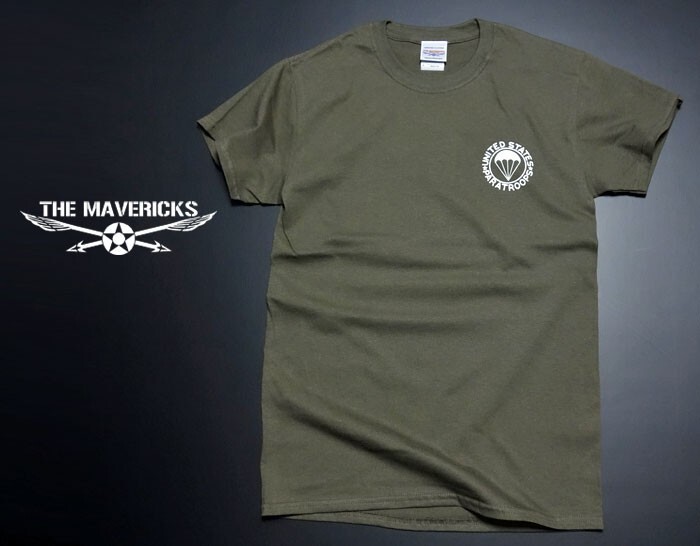 THE MAVERICKS Tシャツ M ミリタリー 半袖 メンズ エアボーン AIRBORNE パラシュート部隊 ブランド オリーブ