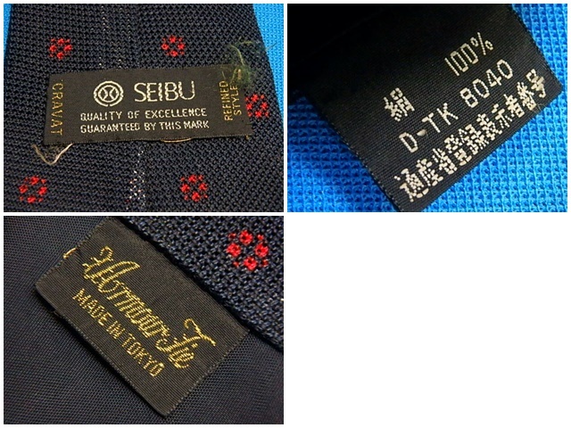 n407k ネクタイ SEIBU Armour Tie made in TOKYO 紺/赤 絹100% 中古 (0618-1)