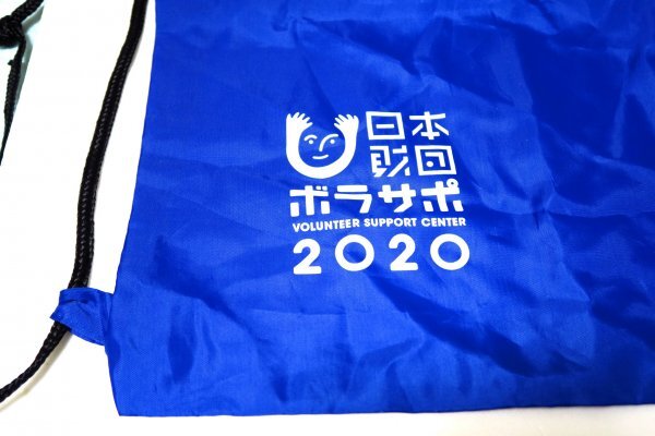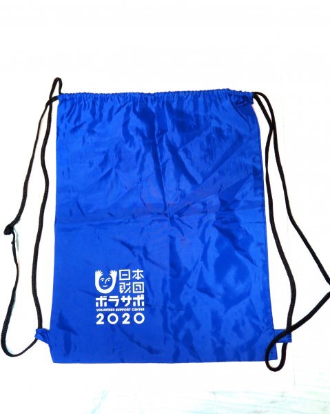 TOKYO2020ボランティアの講習会でいただきました 紐を締めて巾着にもリュックにもなるバッグです 旅行のお供やエコバッグとしても利用できます 肝心の東京オリンピックでは荷物を持ちこめず、使用できませんでした 色は青、ロゴは白 |