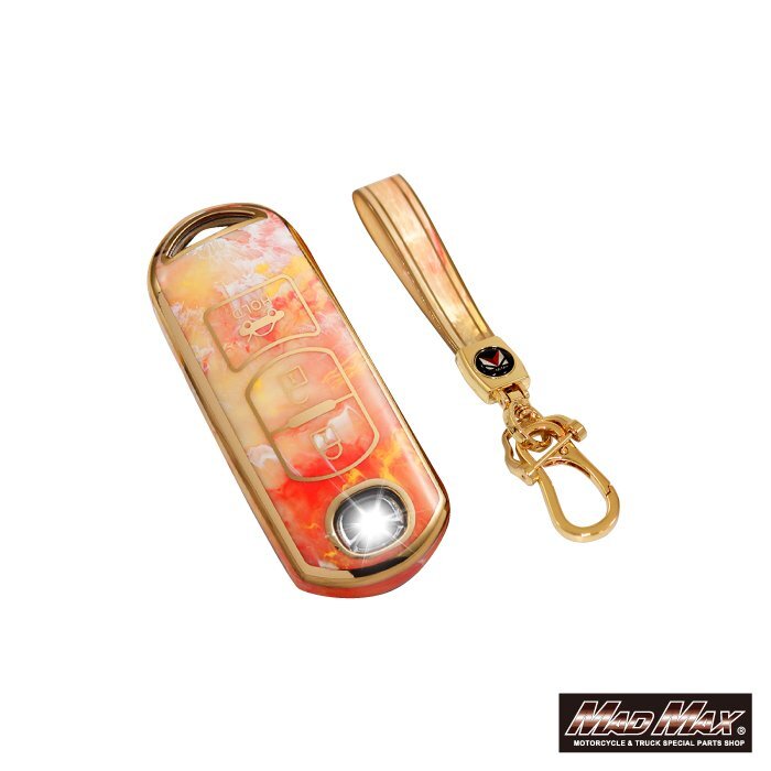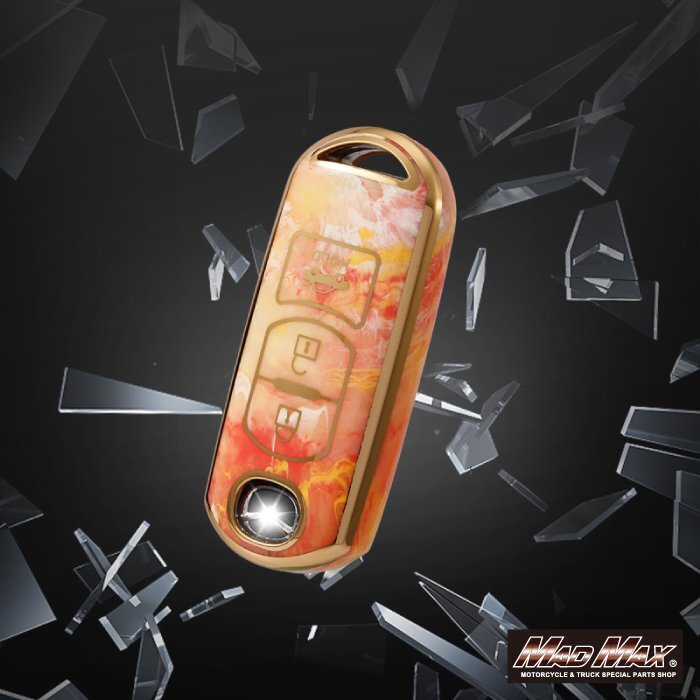 マツダ専用 大理石調 TYPE A 3ボタン式 TPUスマートキーケース オレンジ。