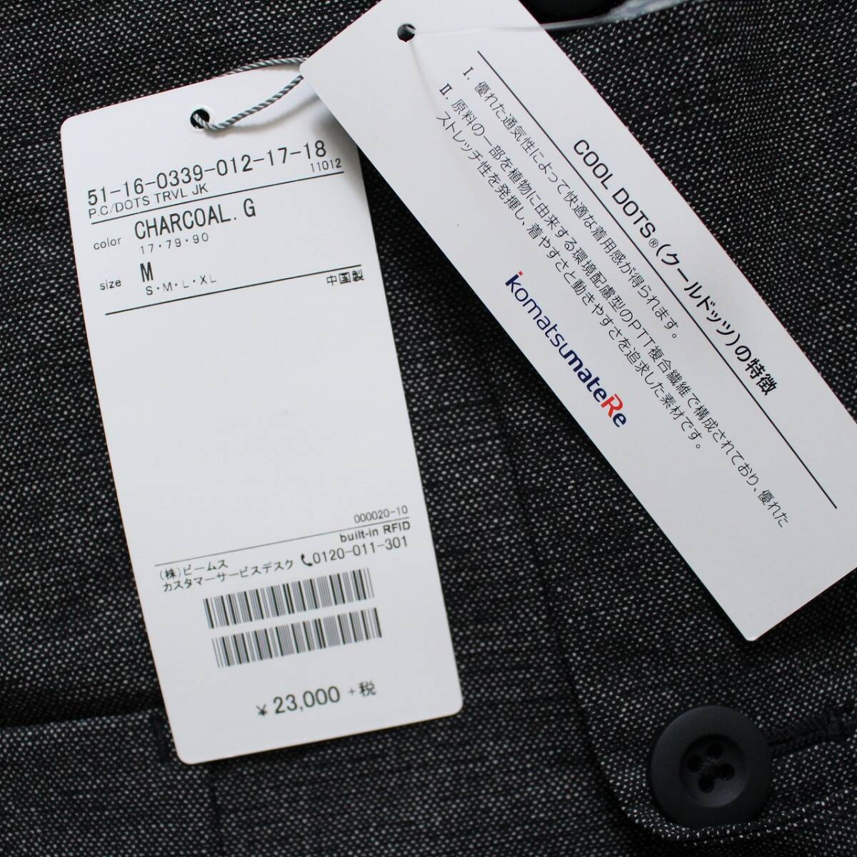 クールドッツ トラベルジャケット、サイズはM、品番 51-16-0339-012、定価 \23,000+税です。
