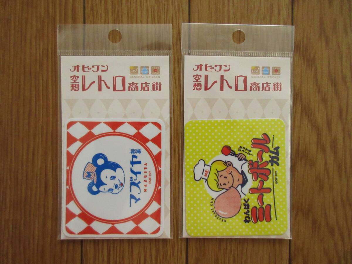 空想レトロ商店街 ステッカー 2種 (マズイヤ・ミートボールガム) 耐水 耐光 塩ビステッカー ob1toy オビワン 日本製 レトロ シール