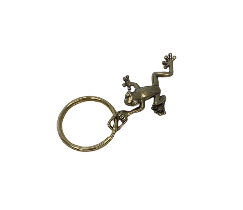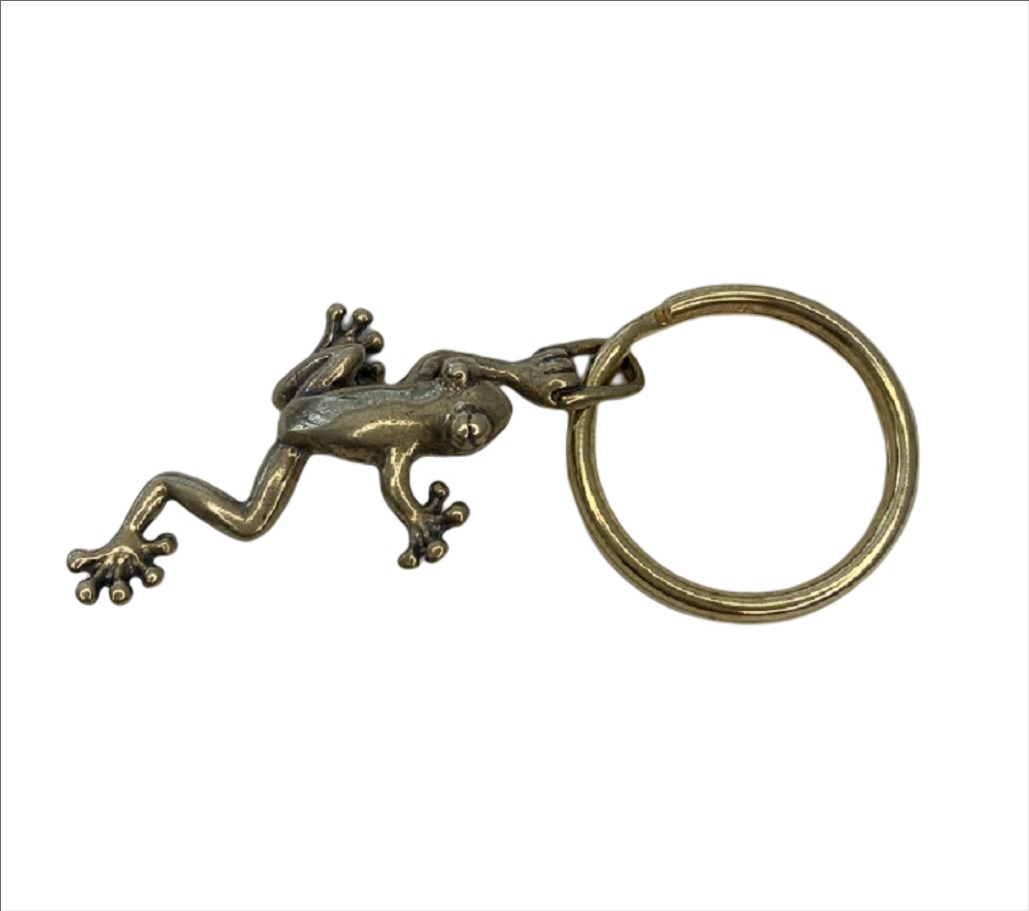Brass 真鍮 ブラス 蛙 カエルのキーホルダー 無事に帰る お守り 6-2
