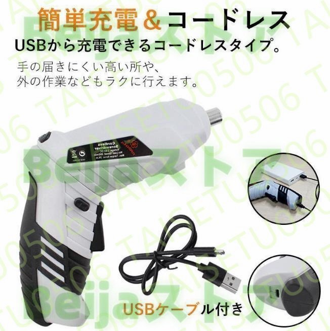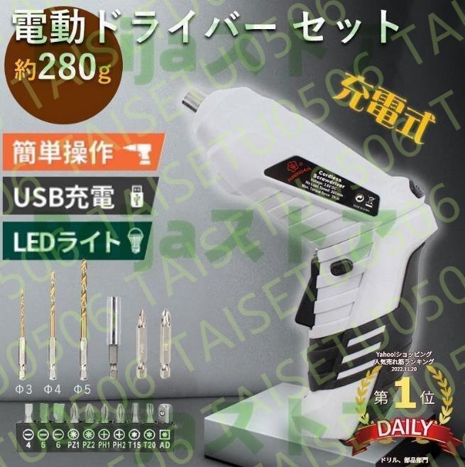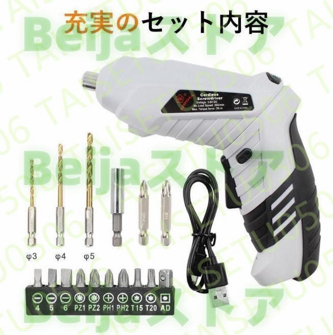 電動ドライバー 電動ドリル ドリルドライバー 16点セット USB 充電式 コードレス ドライバーセット 小型 コンパクト ミニ 軽量 電動工具
