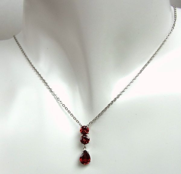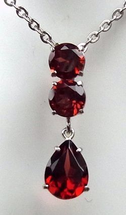 5.0ミリラウンドカット2石に、6.0×8.0ミリティアドロップカット(雫型)の天然ガーネットを揺らしたオリジナルペンダントトップです。