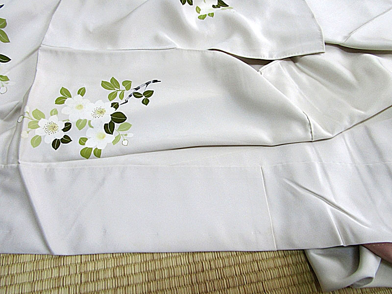 ごく薄いベージュ地?花と色紙柄の上品な附下きものです。