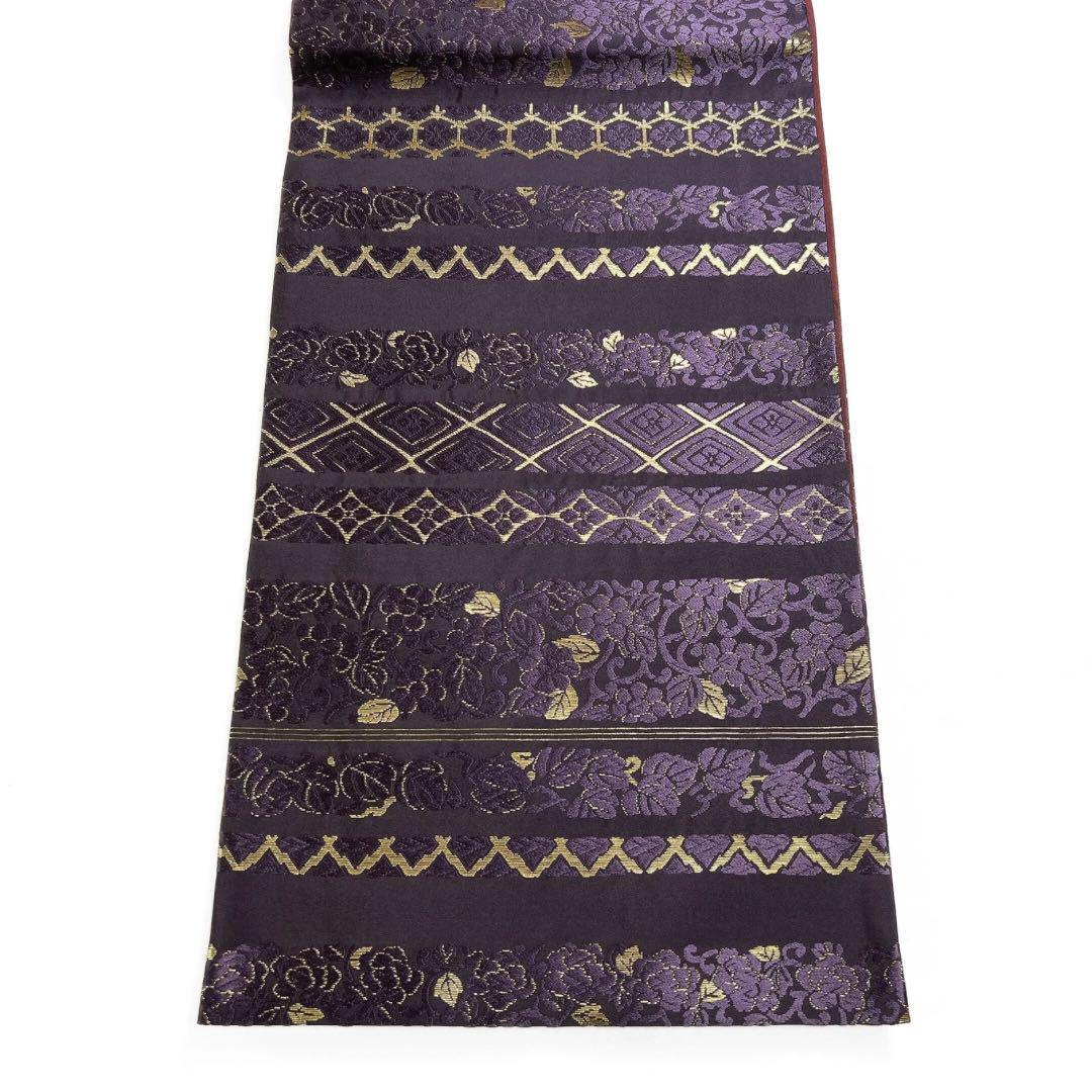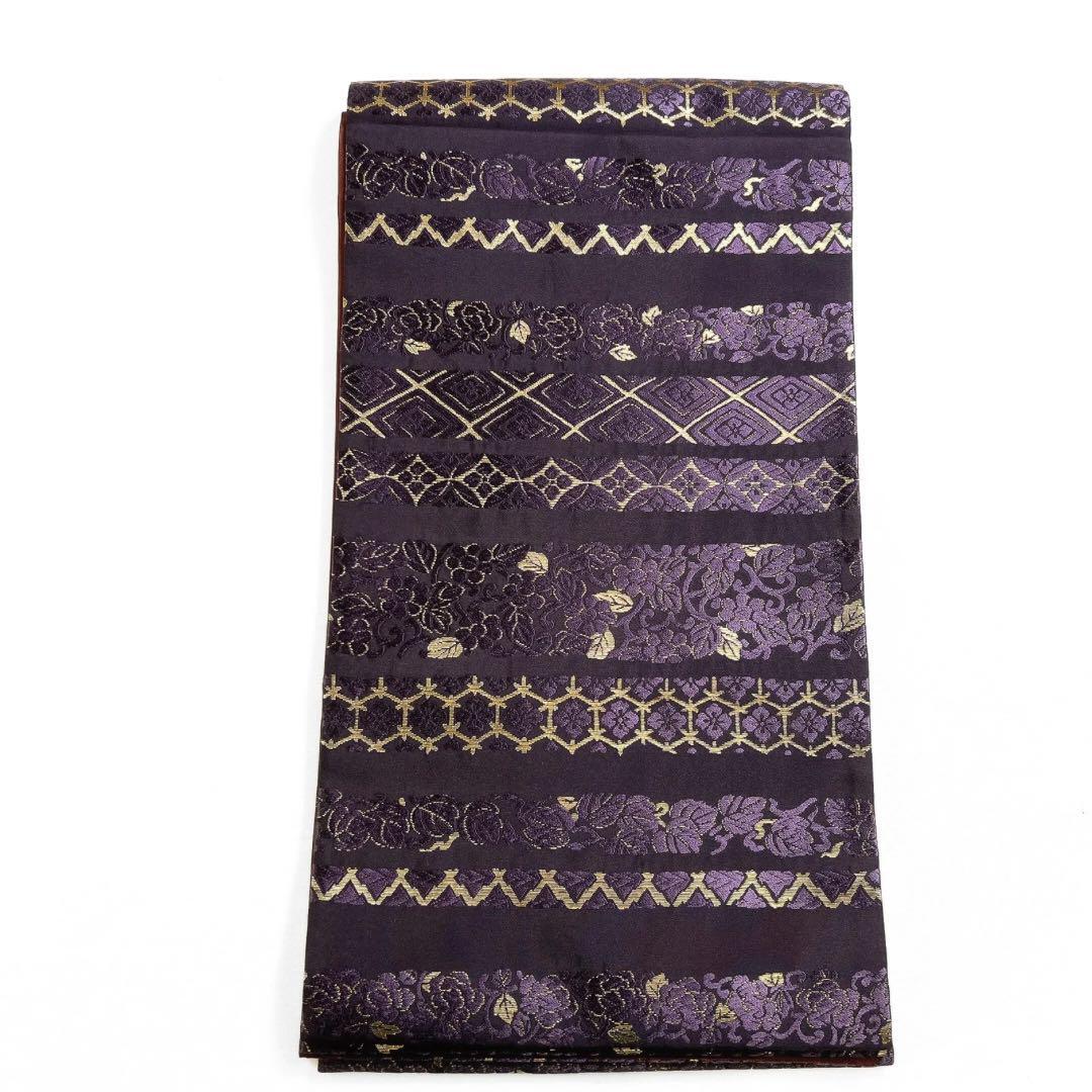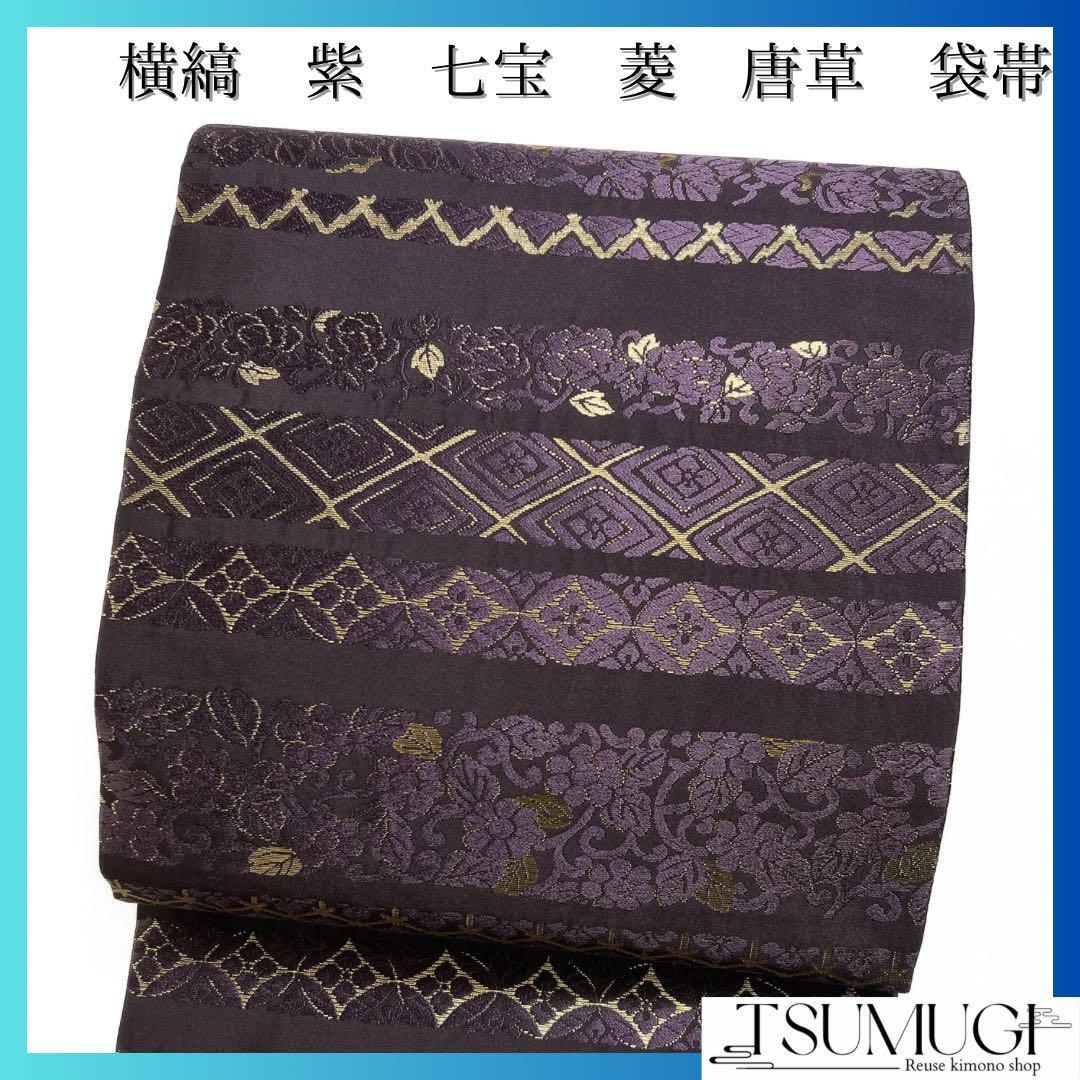 袋帯 横縞 紫 七宝 菱 唐草 花 亀甲 着物 054w d