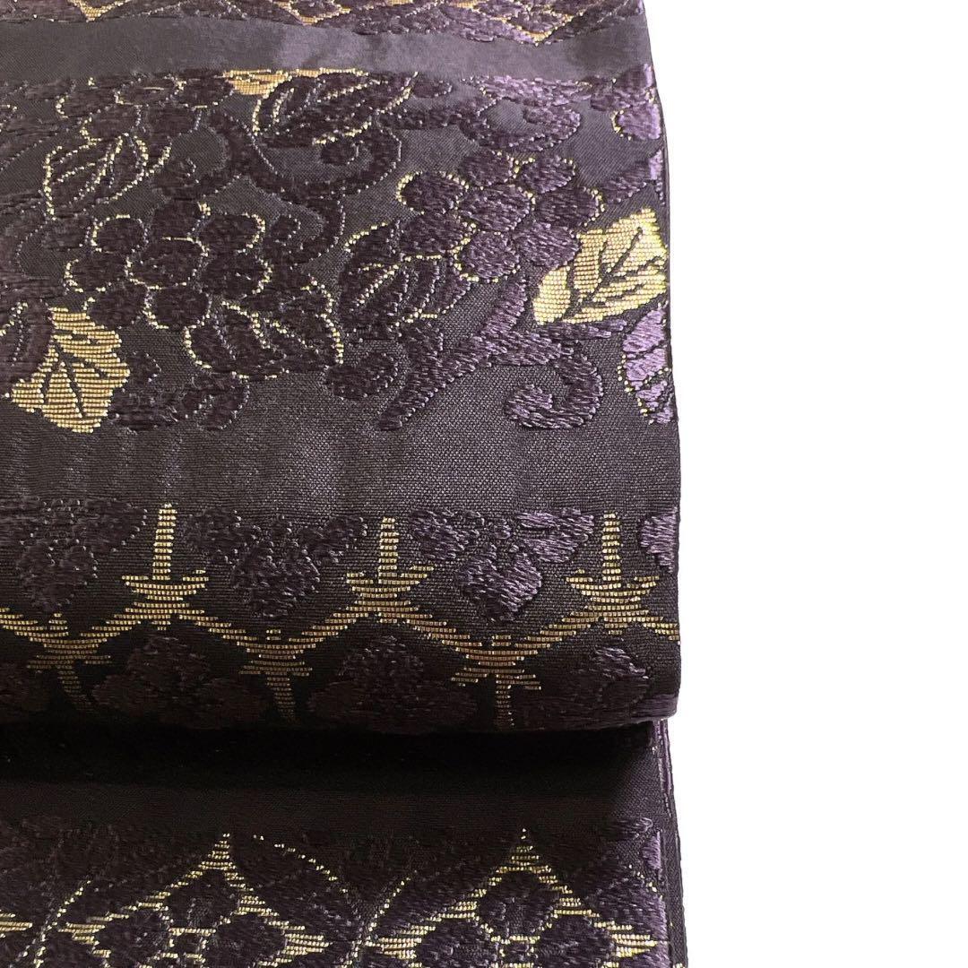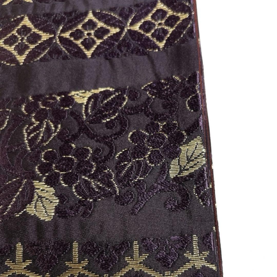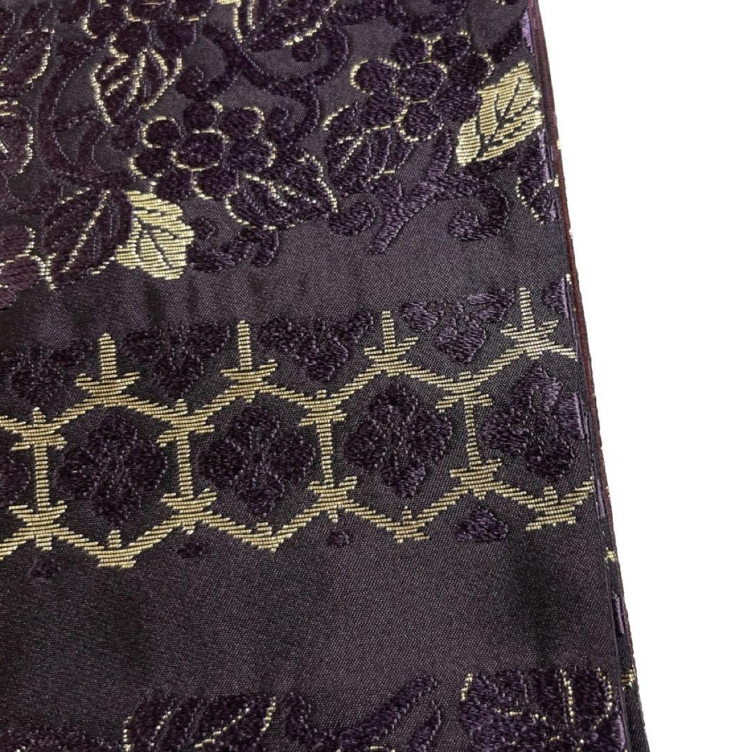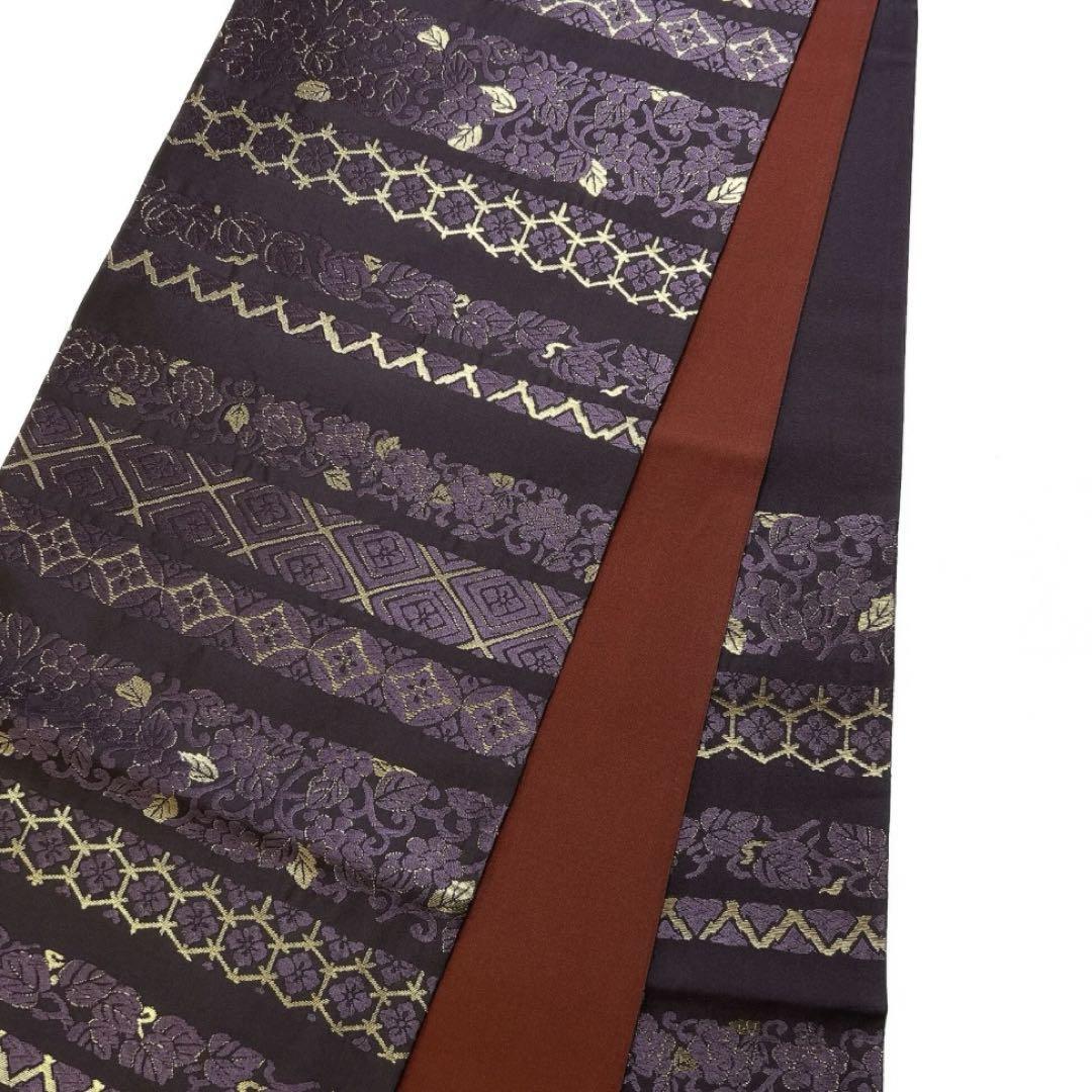 袋帯 横縞 紫 七宝 菱 唐草 花 亀甲 着物 054w d