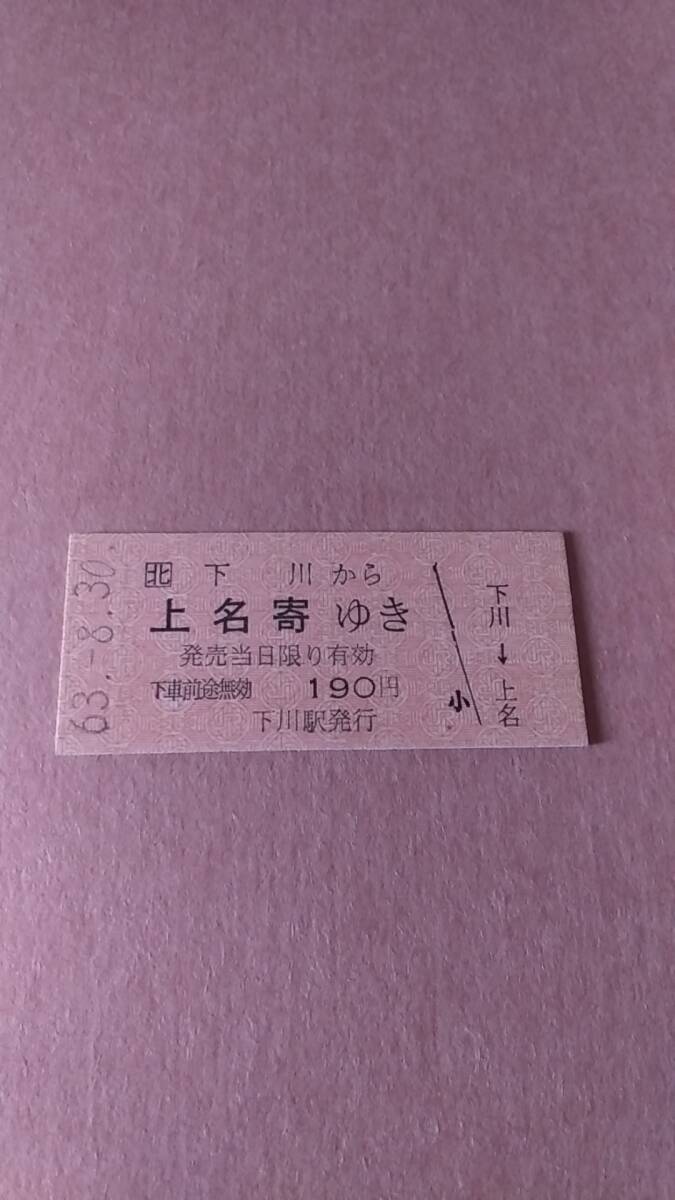 JR北海道 名寄本線 (ム)下川から上名寄ゆき 190円 下川駅発行