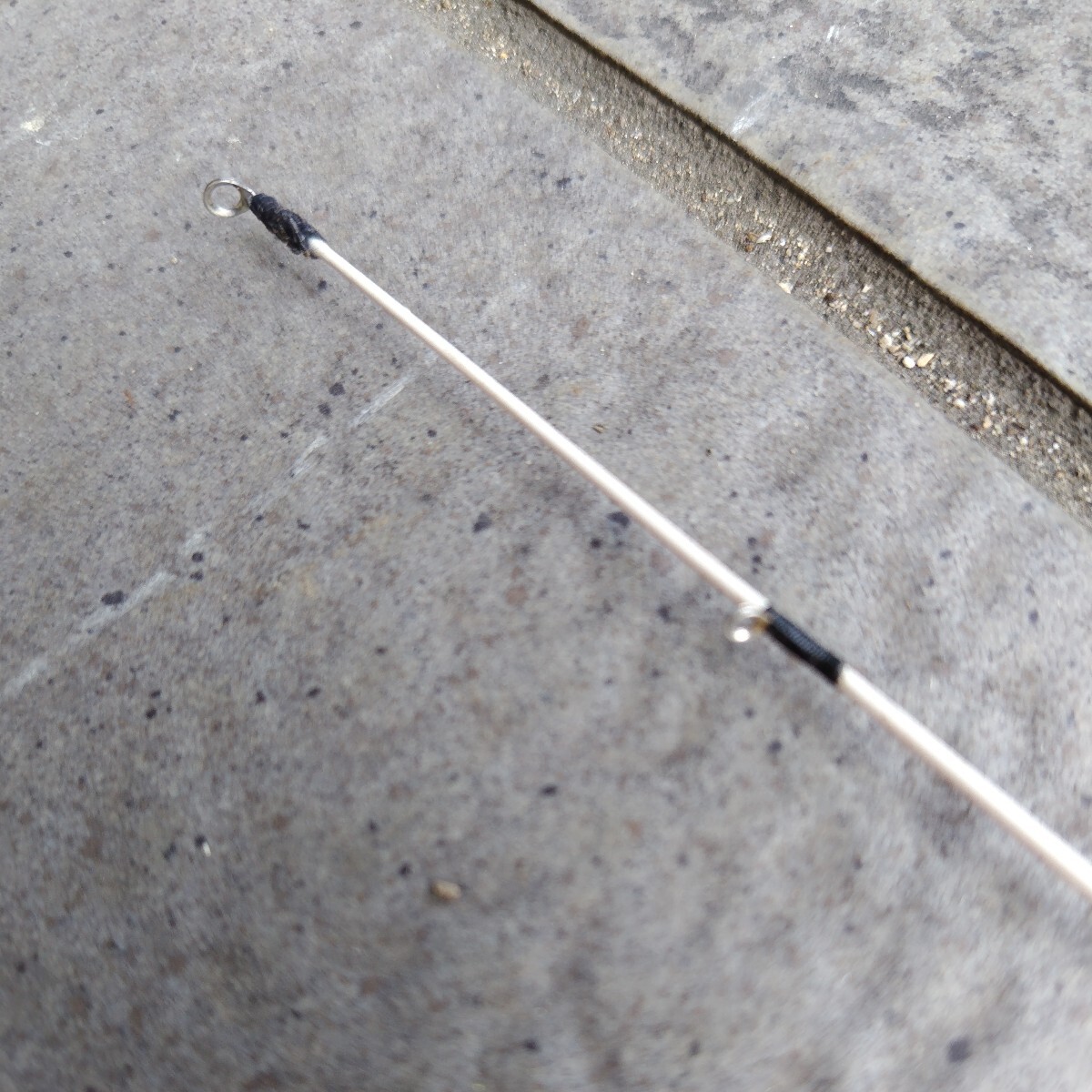 穂先が10cm程短いです。トップガイドをつけ替えてます。元ガイドより1mm大きいです。写真記載。