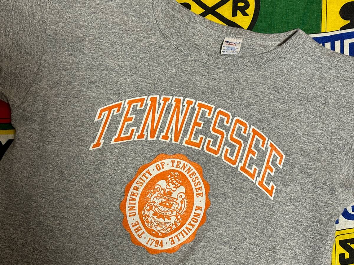 雰囲気◎な霜降りボディーがかっこいい1枚で、これからのシーズンにもオススメな1980年代頃のビンテージカレッジプリントTシャツです。