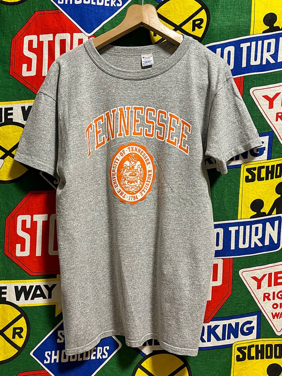 ☆雰囲気◎な霜降りボディーの1枚★Made in USA製アメリカ製ChampionチャンピオンビンテージカレッジプリントTシャツ80s80年代トリコタグL