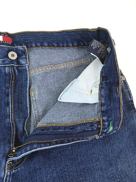 フロントジップフライ、背面ブランドロゴ刻印入りレザーパッチ。