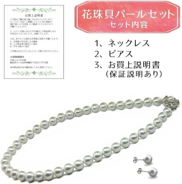 まつよ 花珠貝パール 真珠 9mm 結婚式 冠婚葬祭 卒業式 入学式 アクセサリー 42cm ピアス セット【ホワイトカラー/差込式留め具】