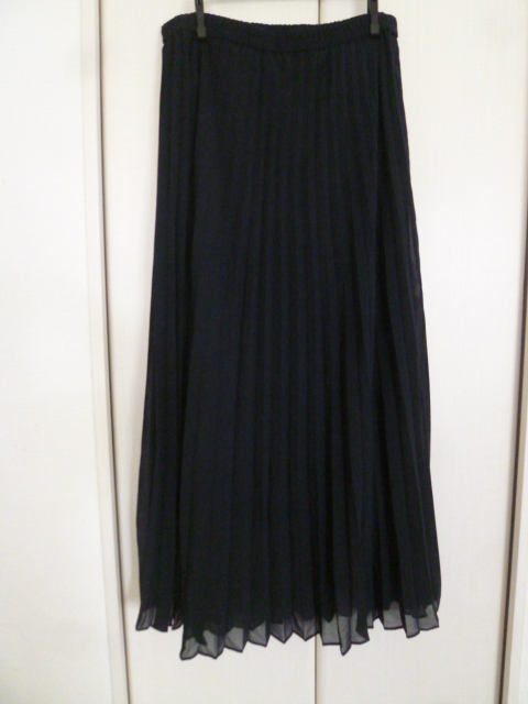 UNIQLO/ユニクロ◇紺ロングシフォンプリーツスカートL,W69-75/ネイビー◇A79sk