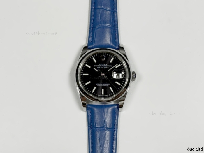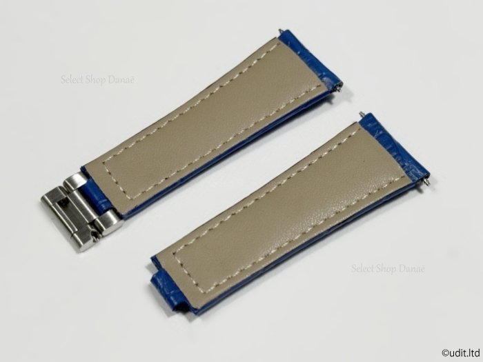 ラグ幅:20mm レザーベルト ブルー 9mm 16mm変換アタッチメント 時計用ベルト 時計用バンド【ロレックス ROLEX用 デイトジャスト等に】