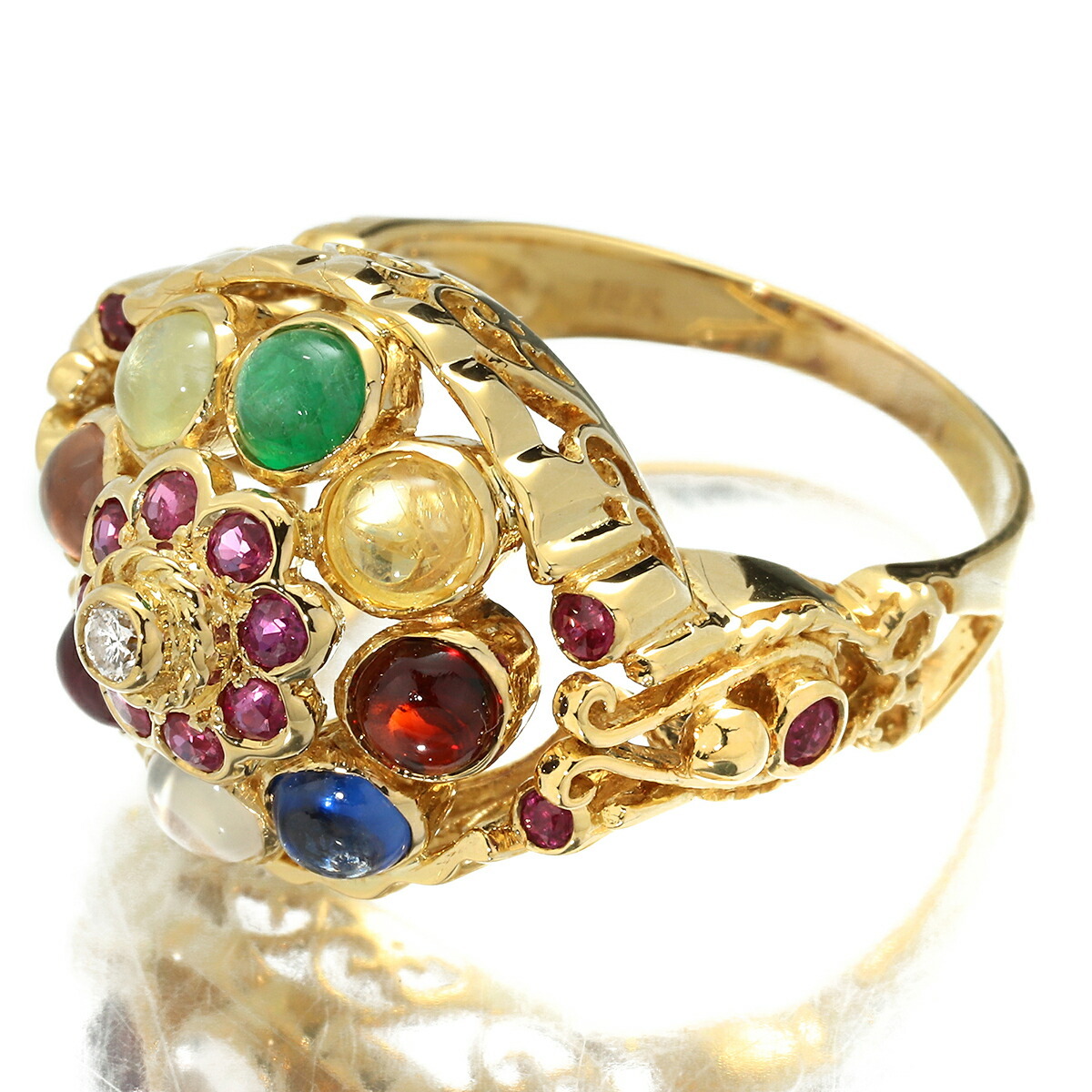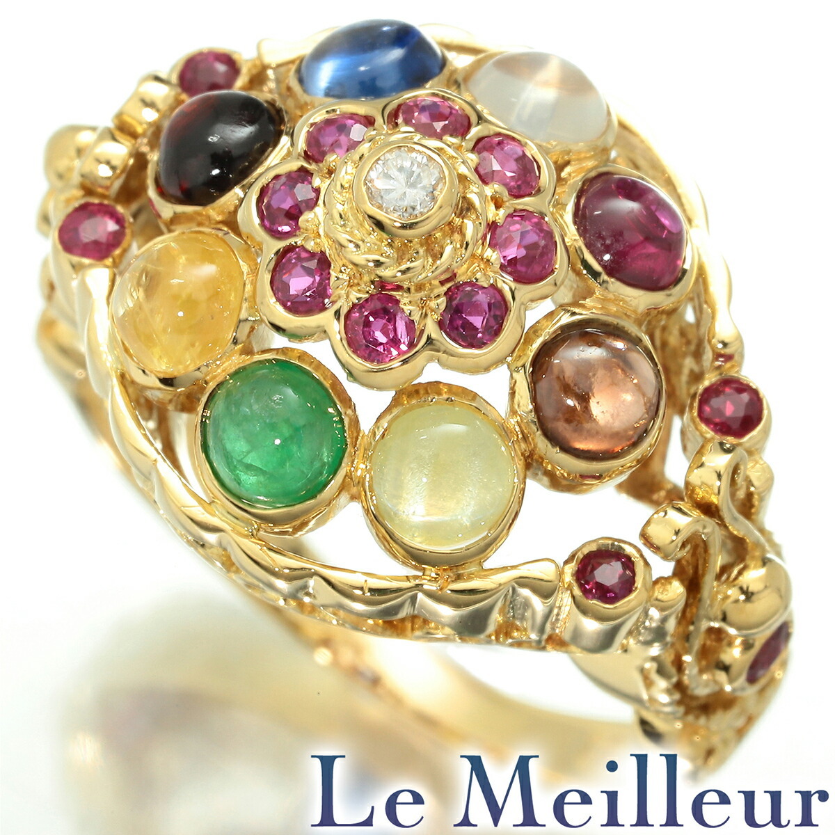 鮮やか ゴージャス インド 占星術 お守り 魔除け ファッション ナヴァラトナ KST 4月 誕生石 18金 20代 30代 40代 50代 60代 70代 USED ユーズド 中古 リユース リング・指輪 LES7609