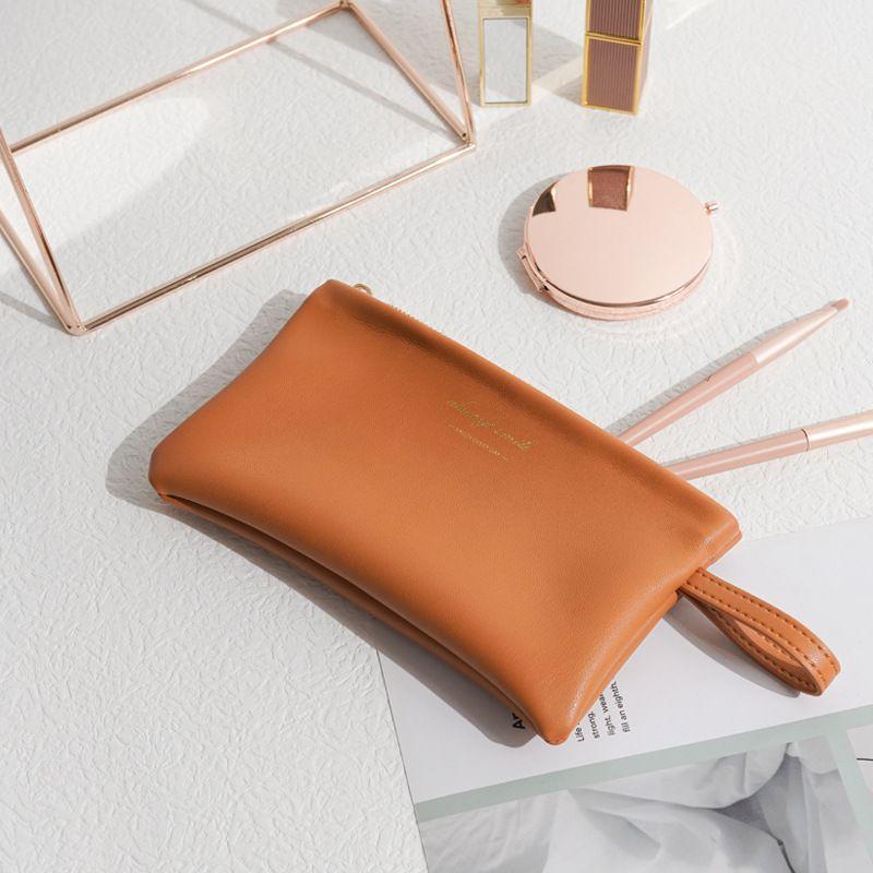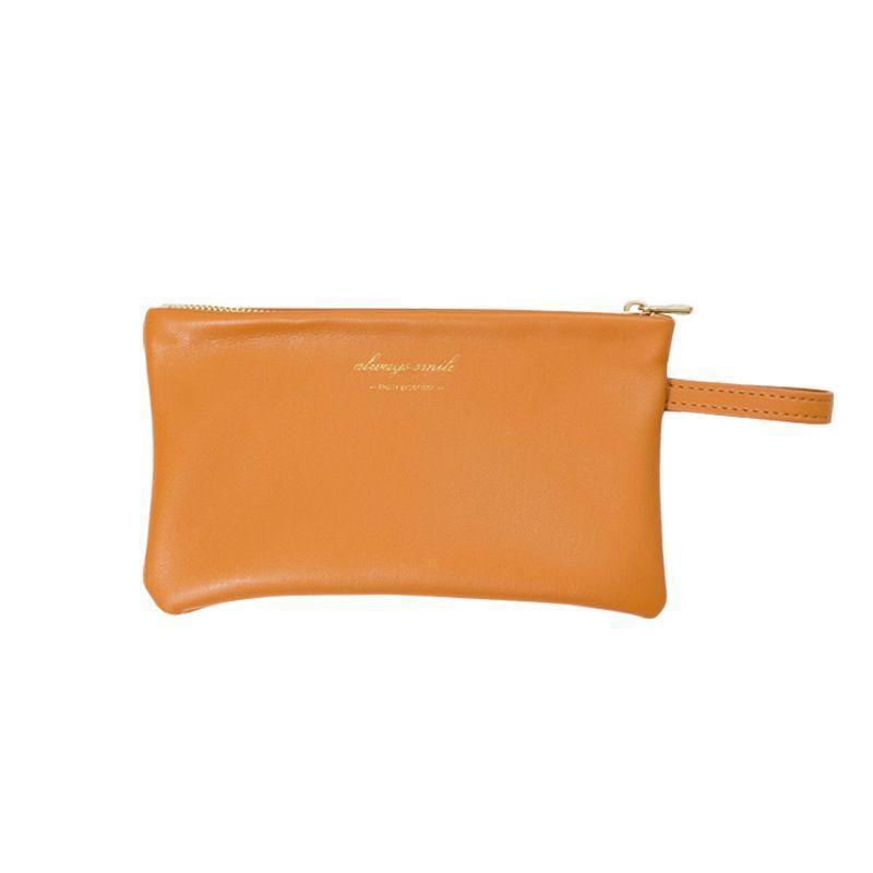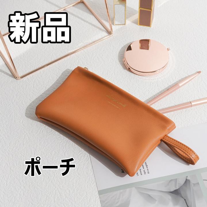 ミニポーチ 小銭入れ シンプル レザーポーチ 薄型 フェイクレザー サニタリーポーチ オレンジ