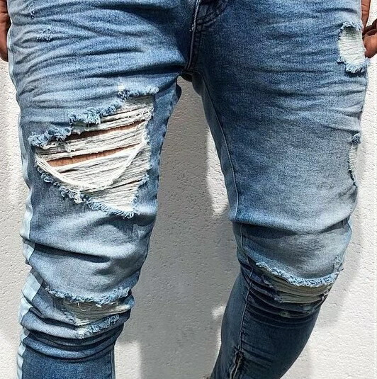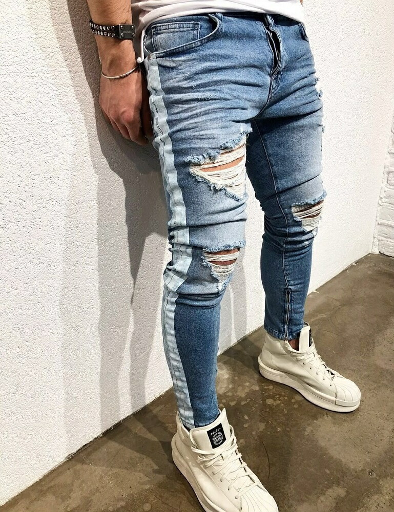【3サイズから選択】【※購入後メッセージ下さい】ダメージ スキニーデニム メンズ 冬 春 夏 秋 ダメージデニム サイドライン スキニー