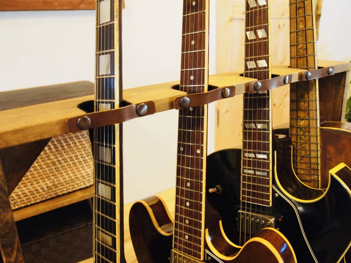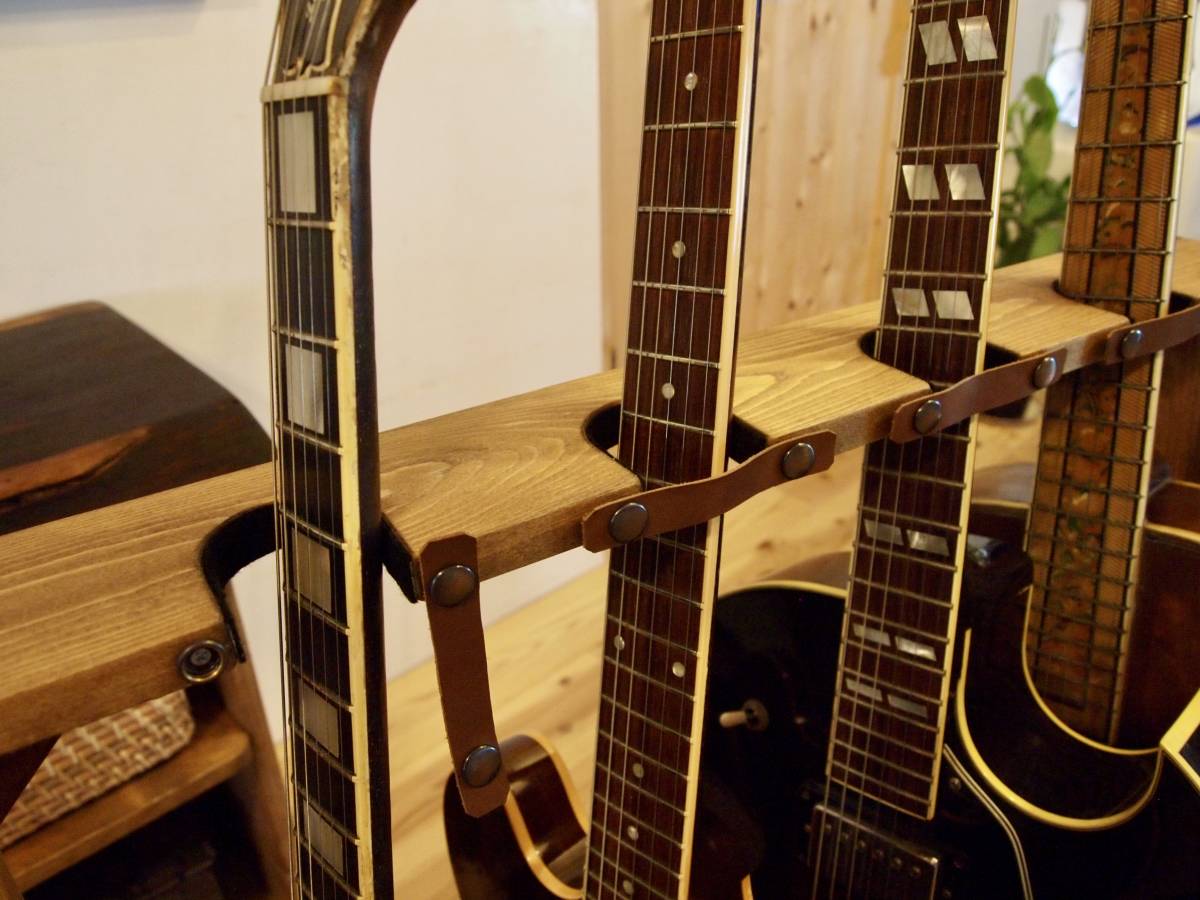 ギタースタンド★5本掛け★3本掛け★2台まとめて★本革安全ガード付き