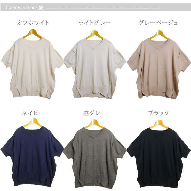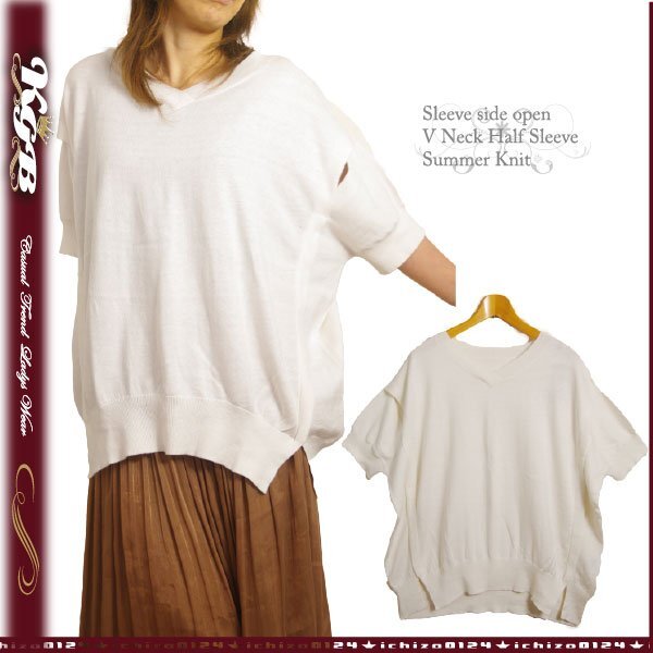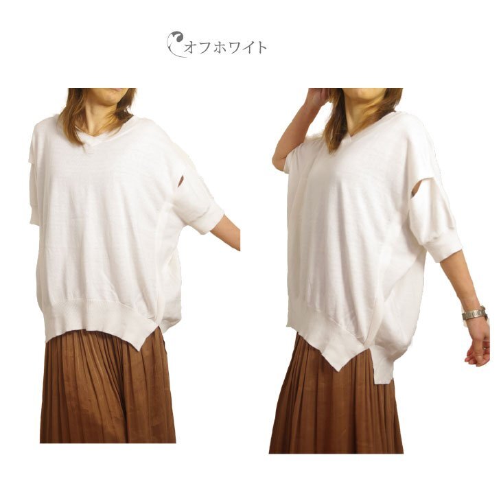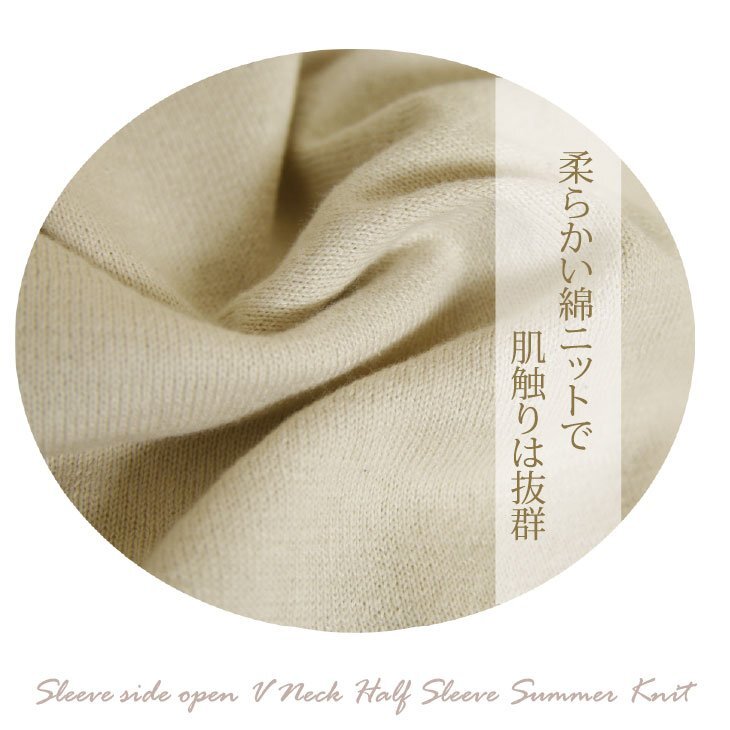 M~L カットソー 5分袖 レディース サマーニット 袖脇オープン Vネック ゆったり オフホワイト 新品