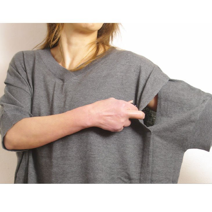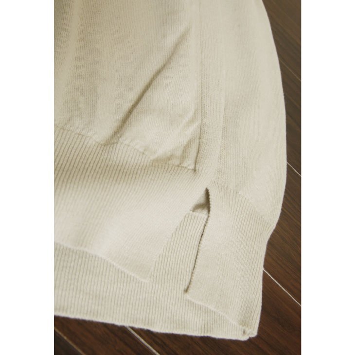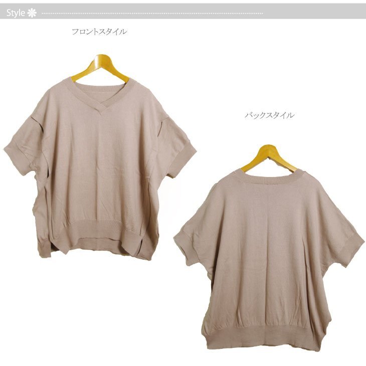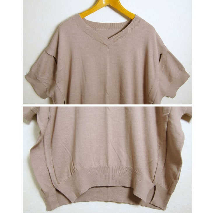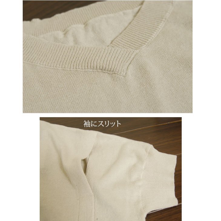 ★袖にスリットの入った5分袖のVネックサマーニット。