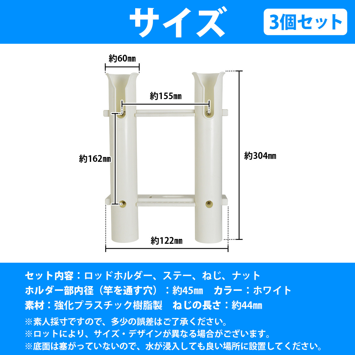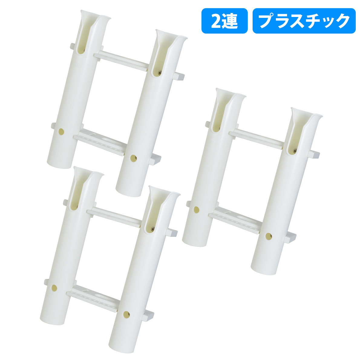 【送料無料】[2連 3個セット] ロッド ホルダー 竿 立て 置き 入れ 釣り フィッシング スタンド ネジ付 固定 船 漁船 ボート 白 ホワイト