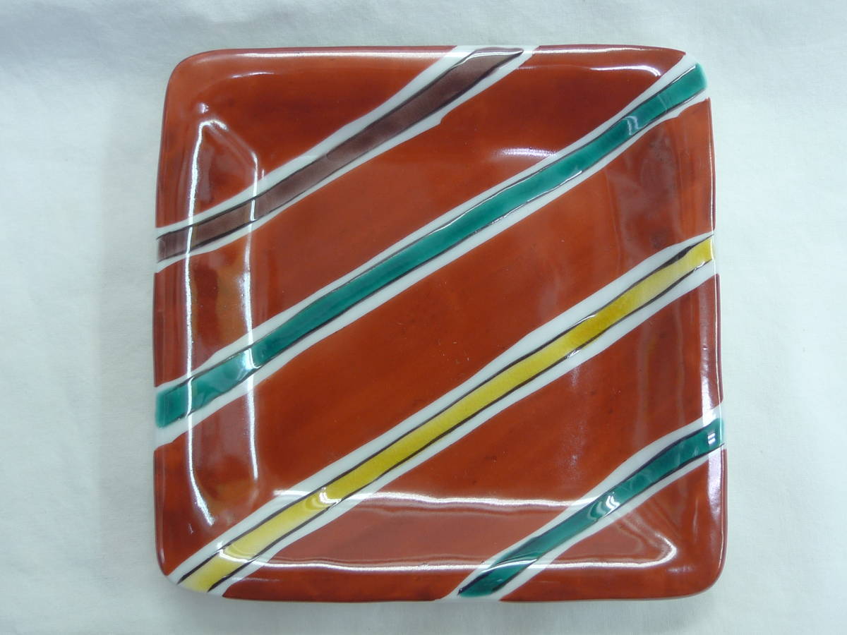 魯山人写し 色絵間道文角銘々皿 約13cm×約13cm