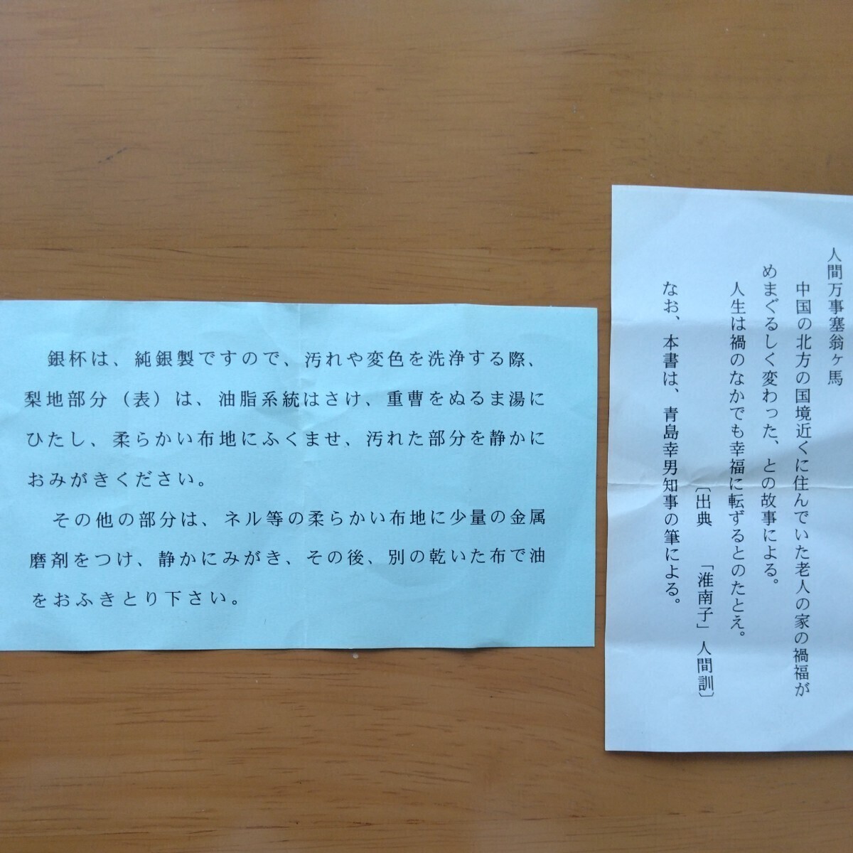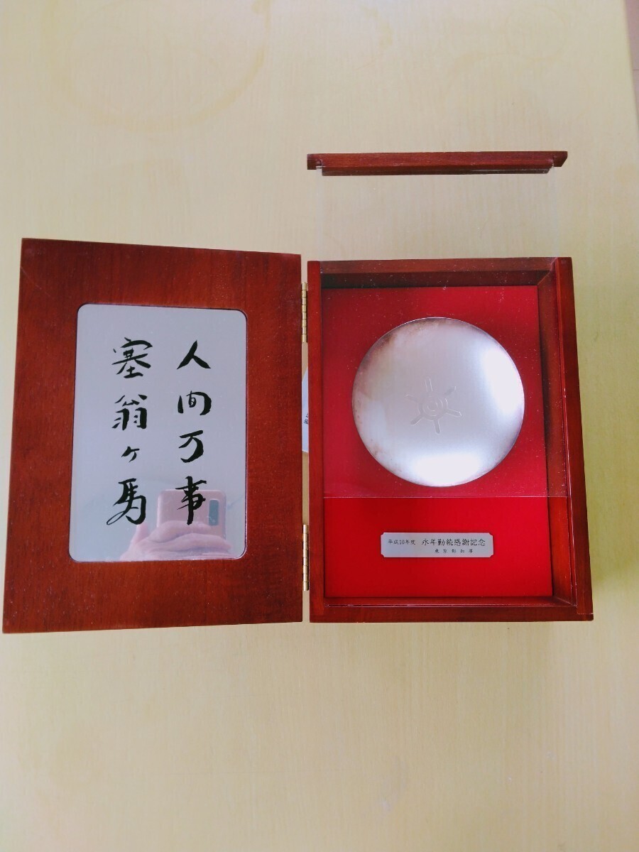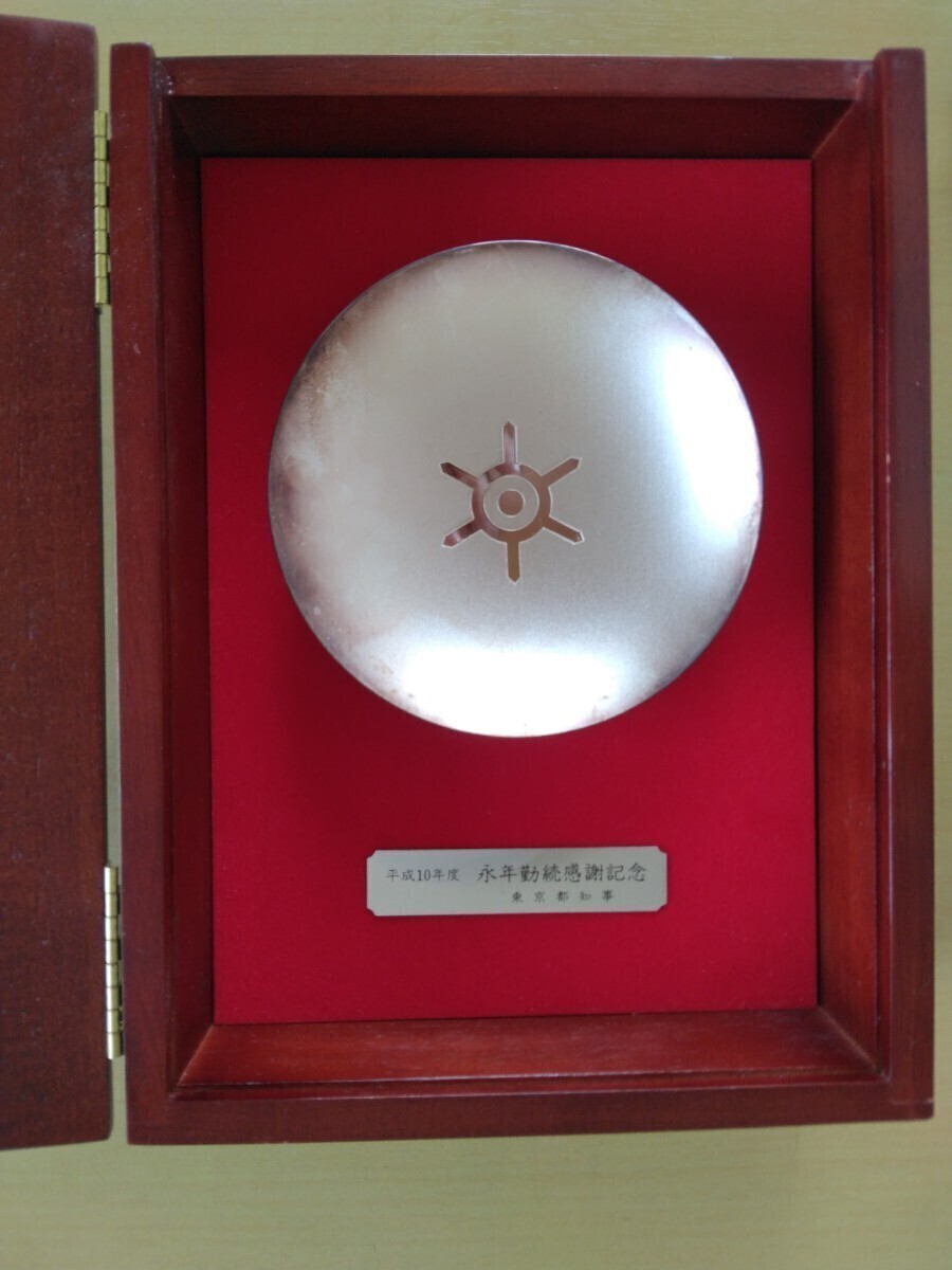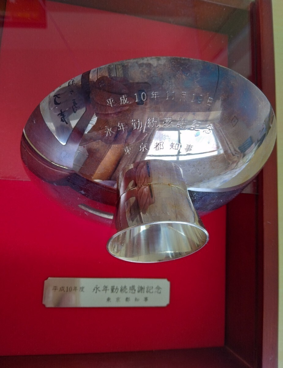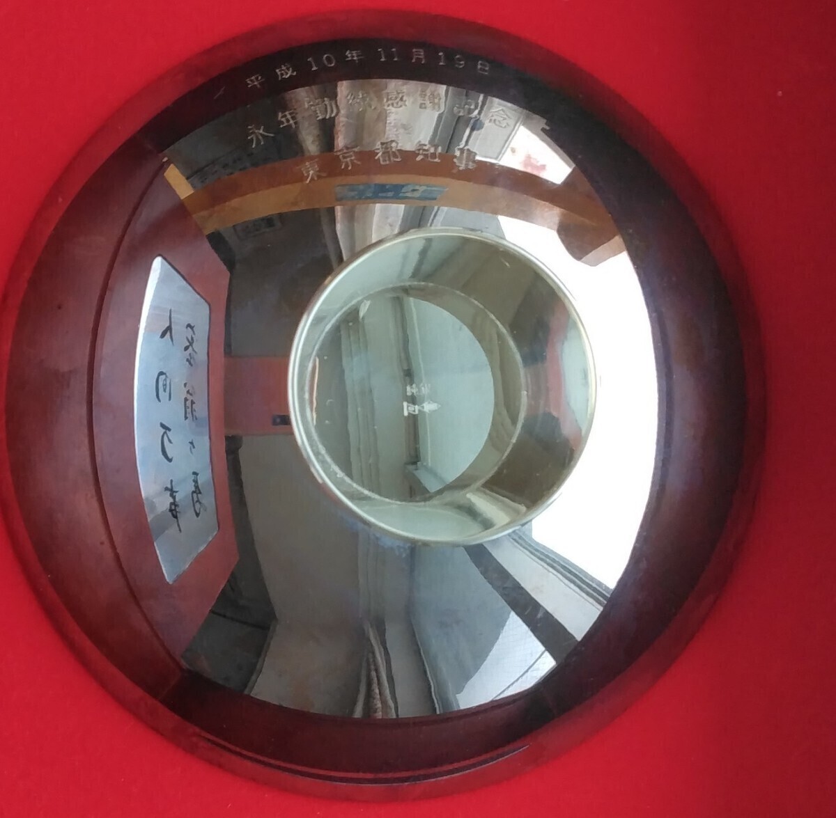 純銀盃 平成10年度 東京都知事永年勤続感謝記念品です。