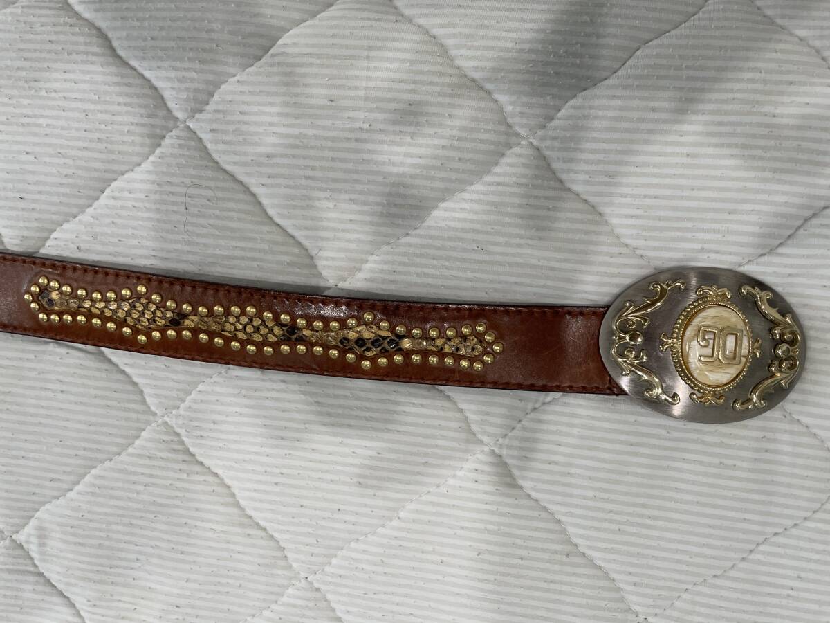ドルチェガッバーナ天然石高級ベルトになります。明るい茶色にパイソン柄にゴールドスタッズ