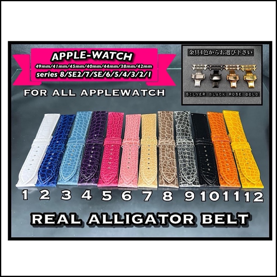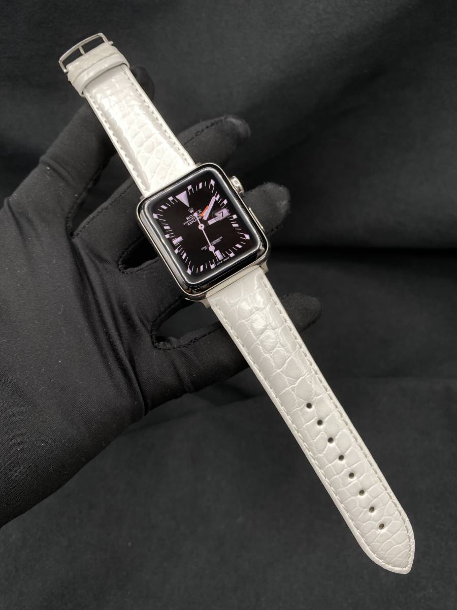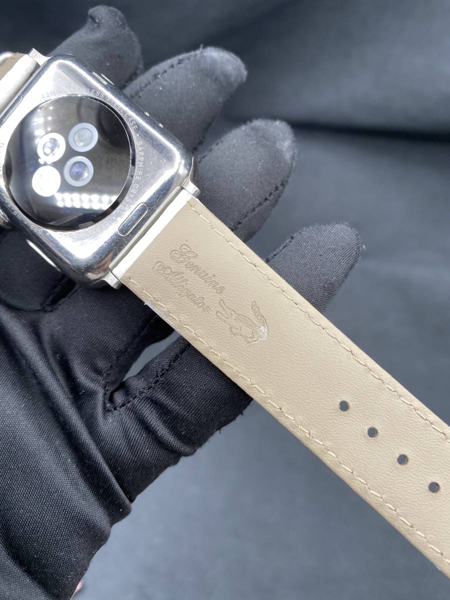 ホワイト 動画 本物 アリゲーター クロコダイル アップルウォッチ ベルト バンド 46mm 41mm 45mm49mm 38mm 40mm 42mm 44mm シリーズ10