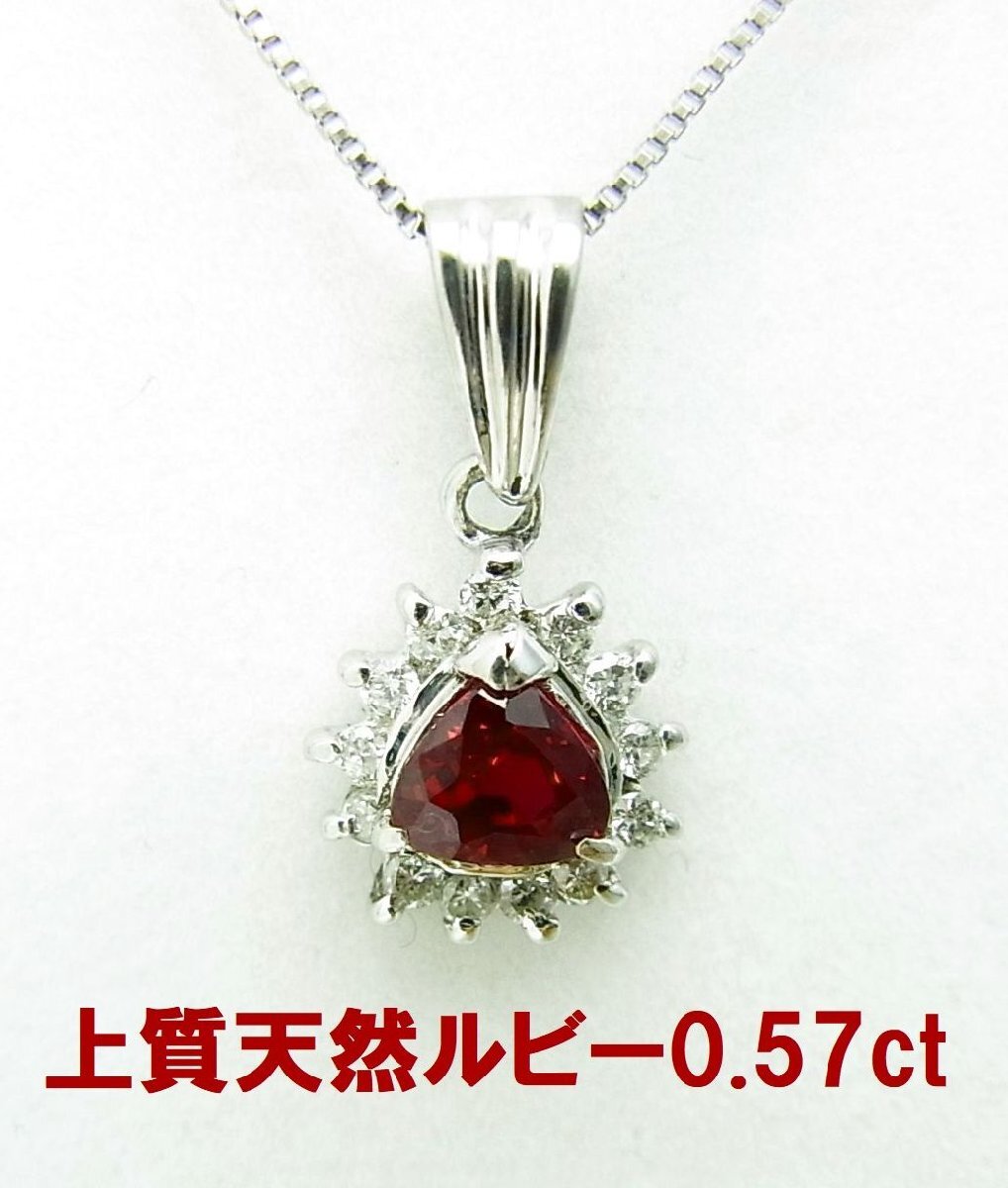超上質色 天然ルビー0.57ct 天然ダイヤ取巻0.17ct プラチナ製ペンダントトップ 卸価格 商品動画あり 送料込み