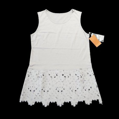 新品 DIAPASON 裾レース モチーフ タンクトップ グレー M L 9号 11号 無地 花
