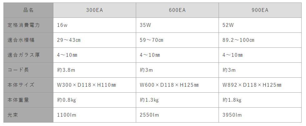 ・30cm水槽にも対応する幅広いラインナップ(6種類:EC×3種、EA×3種)