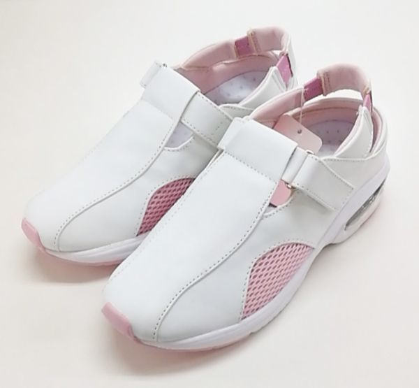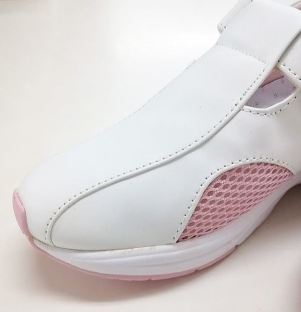 B品 レディース ナースシューズ LLサイズ 24.5cm 25.0cm ピンク ルームシューズ 上履き 上靴 介護靴 ベルクロ バンド メッシュ 16546 ①
