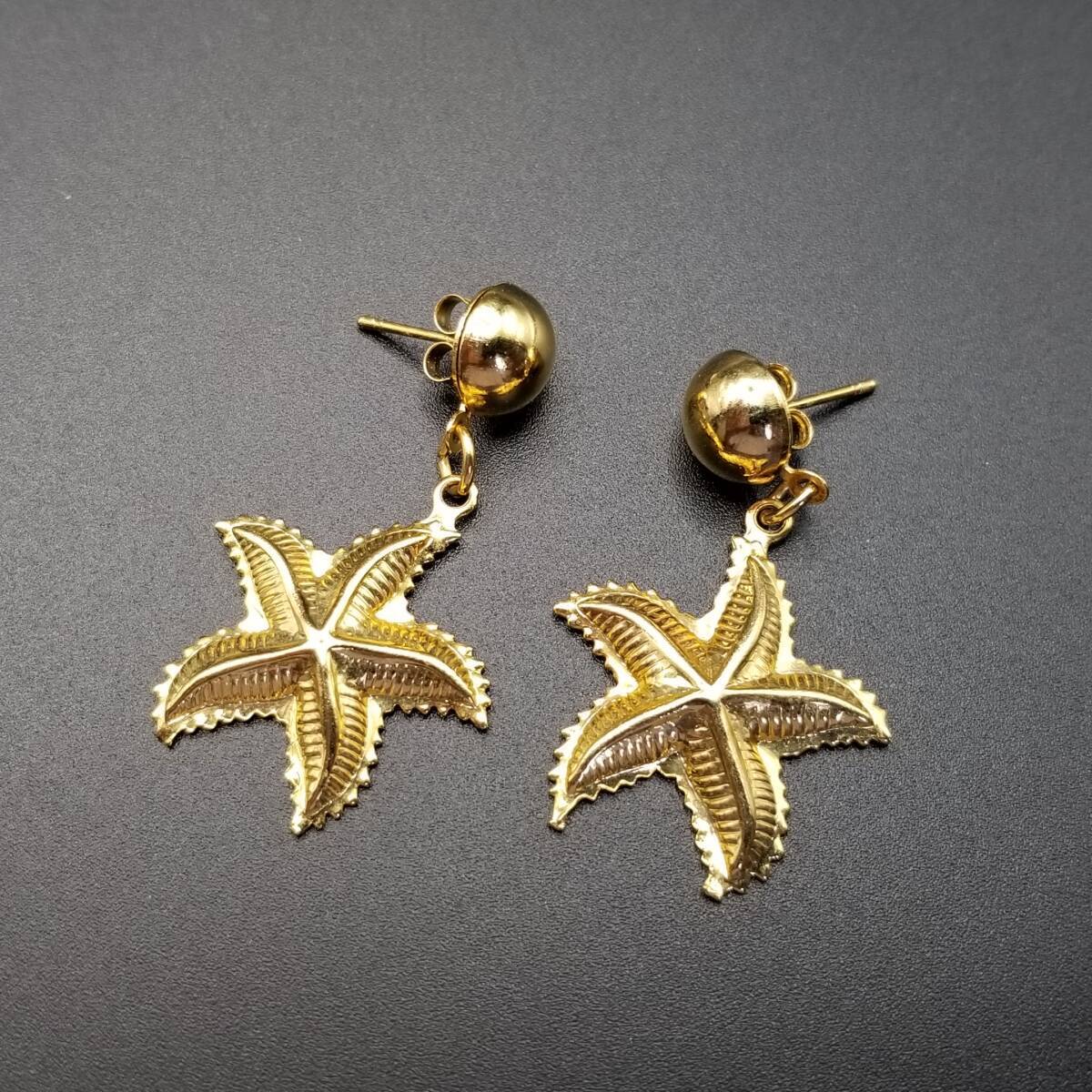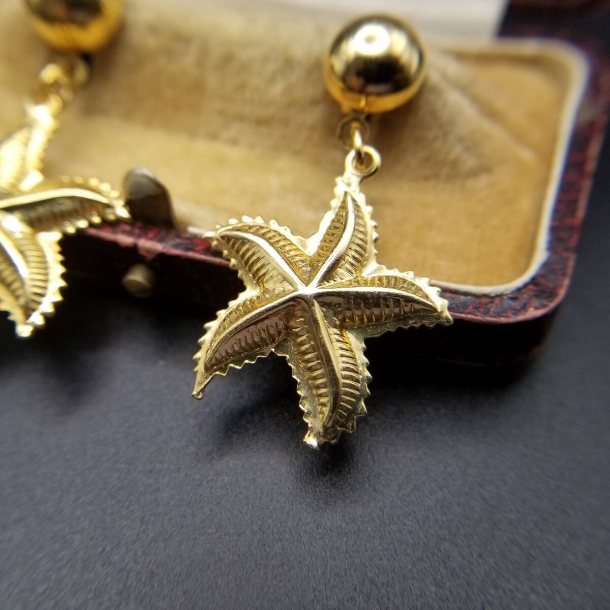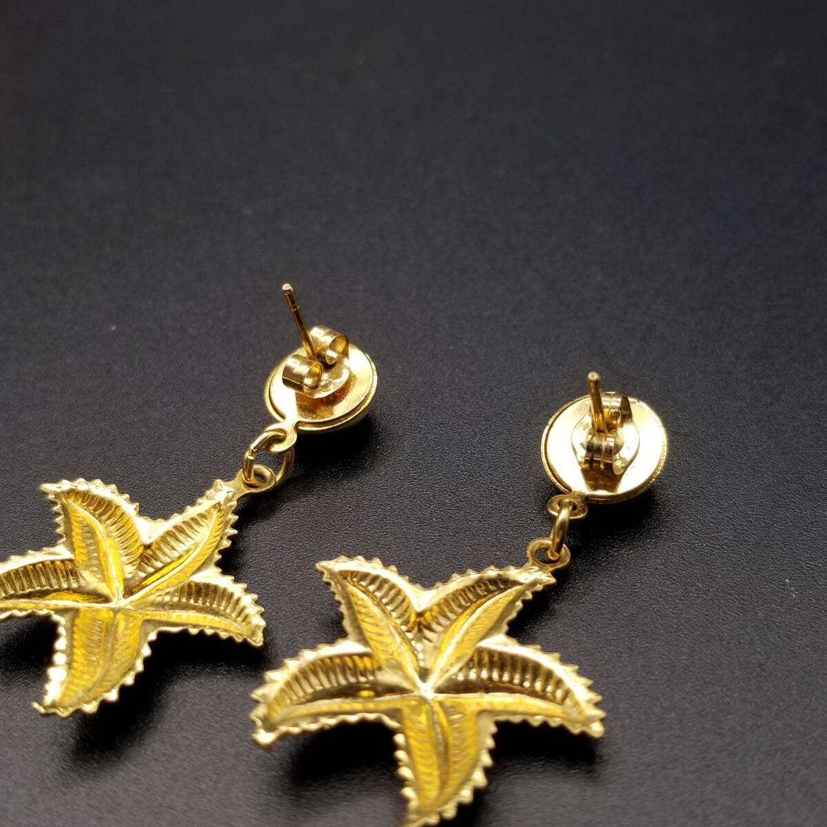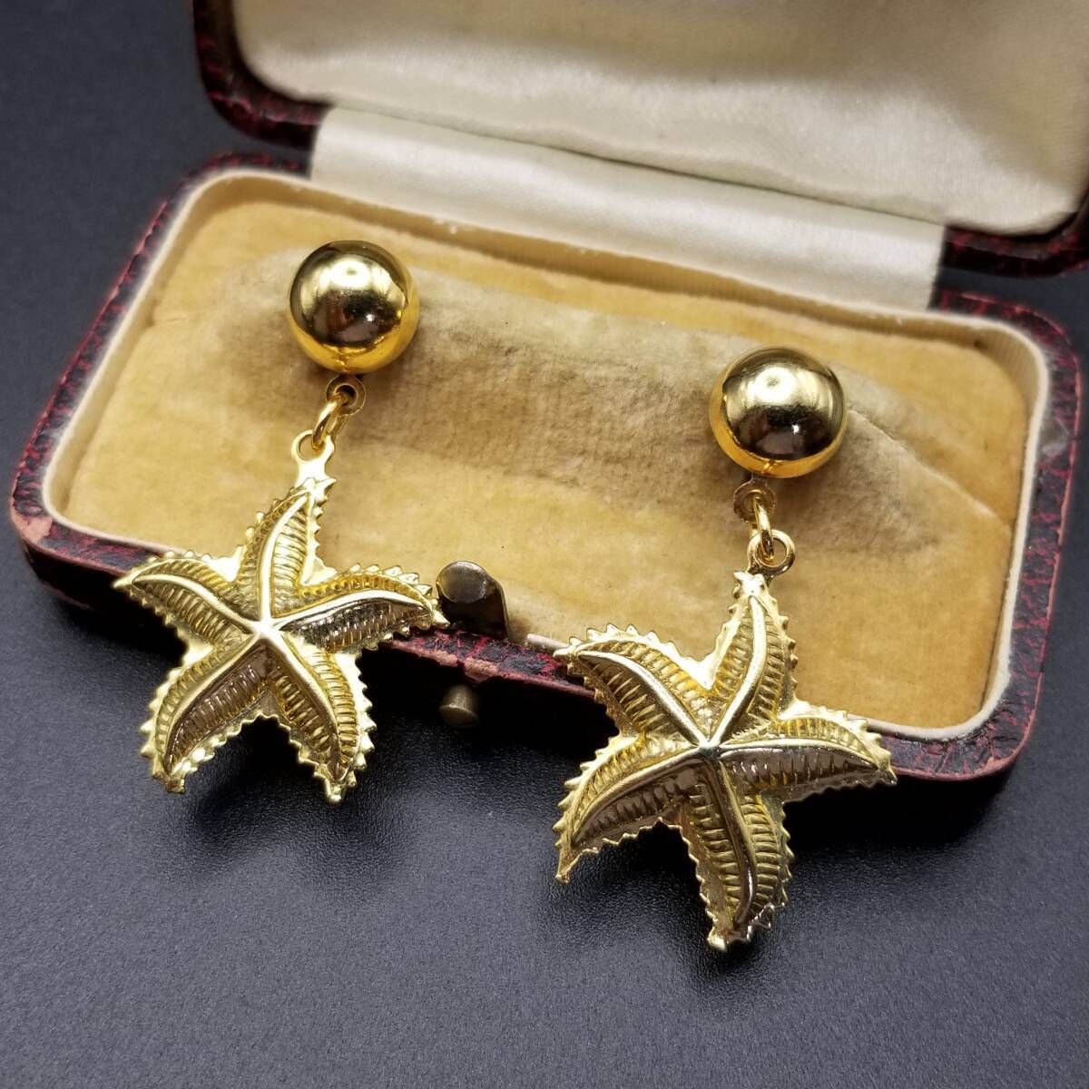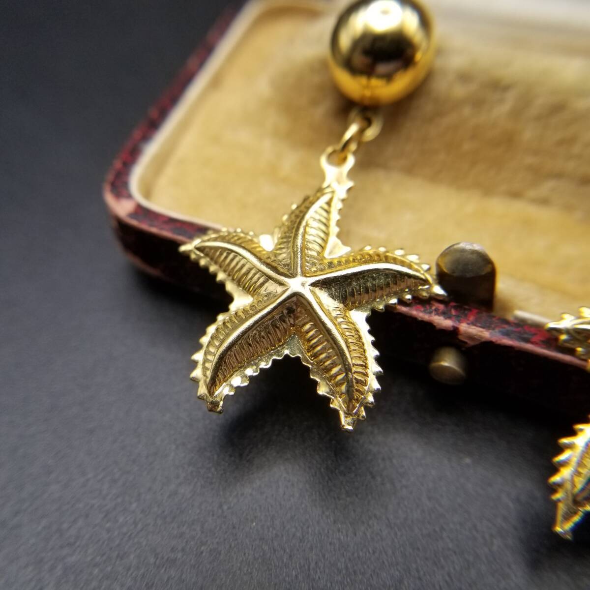 ヒトデ 海の生き物モチーフ ヴィンテージ ピアス ゴールドトーン 揺れる チャーム キュート Starfish Y16-R