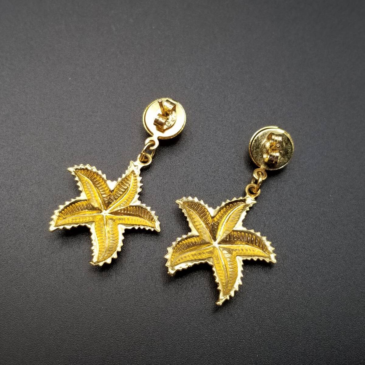 ヒトデ 海の生き物モチーフ ヴィンテージ ピアス ゴールドトーン 揺れる チャーム キュート Starfish Y16-R