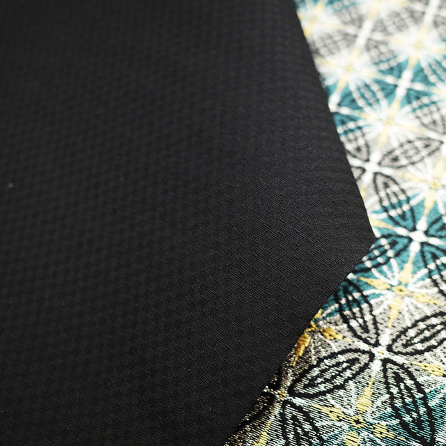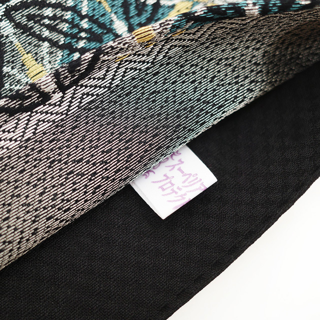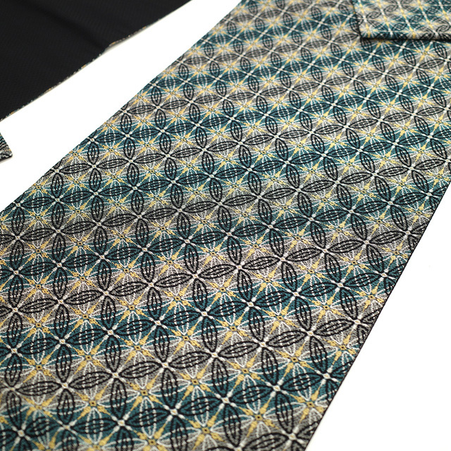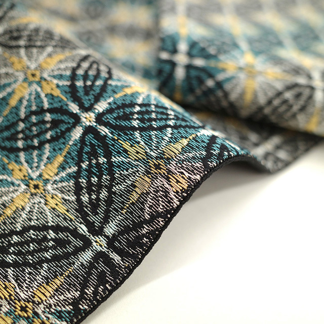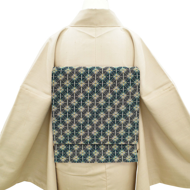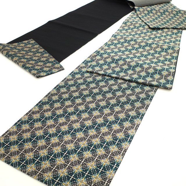 こちらのお品は 黒・緑・グレーのシックでおしゃれなお色合いで花七宝文様が織り出されています。