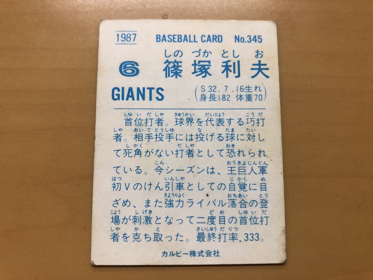 金枠 首位打者 カルビープロ野球カード 1987年 篠塚利夫(巨人) No.345