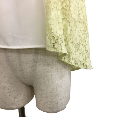 リランドチュール カットソー ブラウス プルオーバー ラウンドネック レース シフォン ナイロン 切替 ノースリーブ 2 白 黄 ホワイト