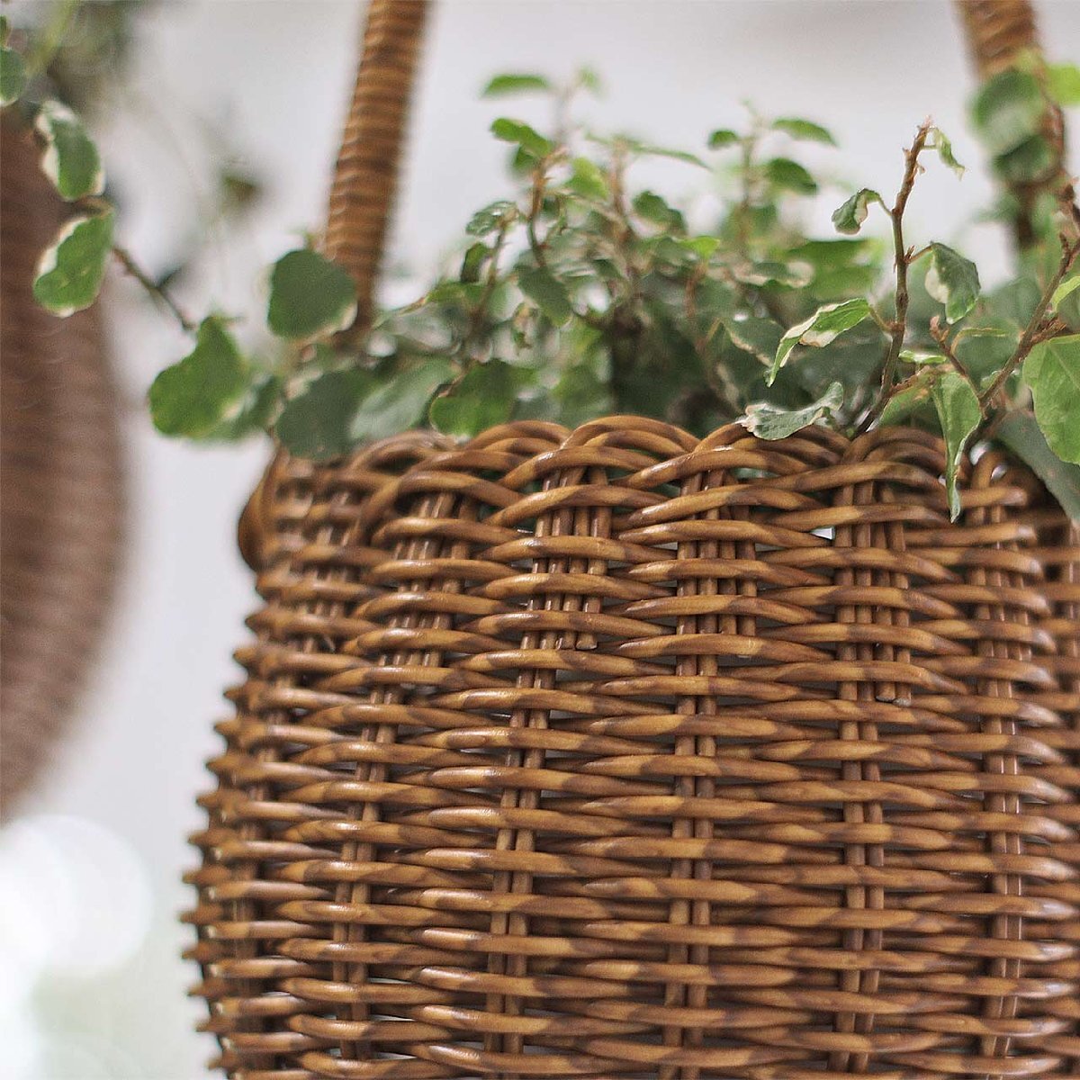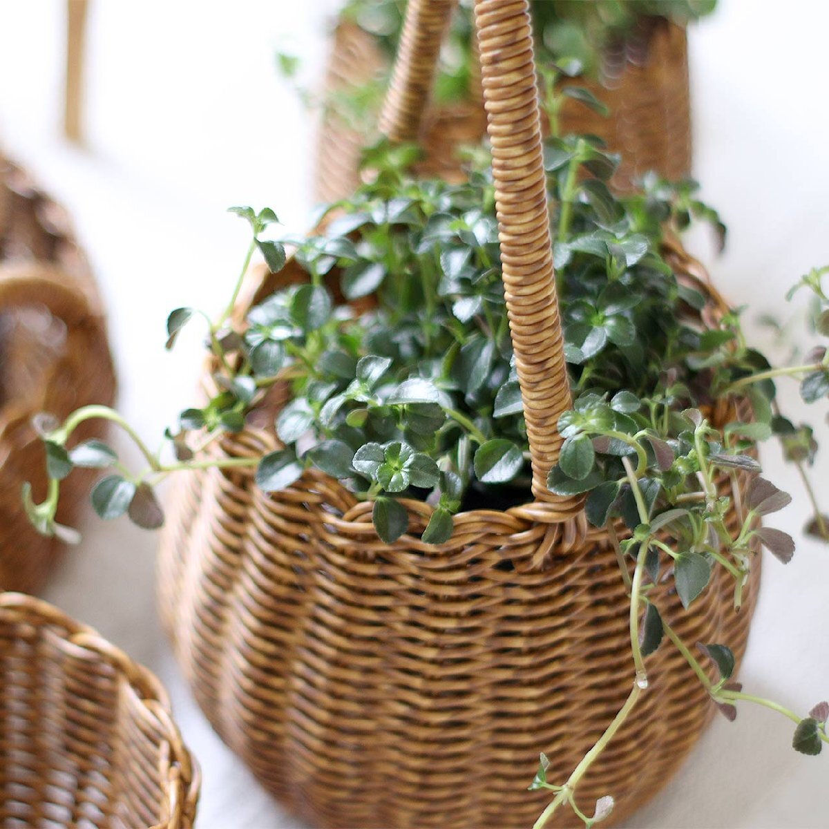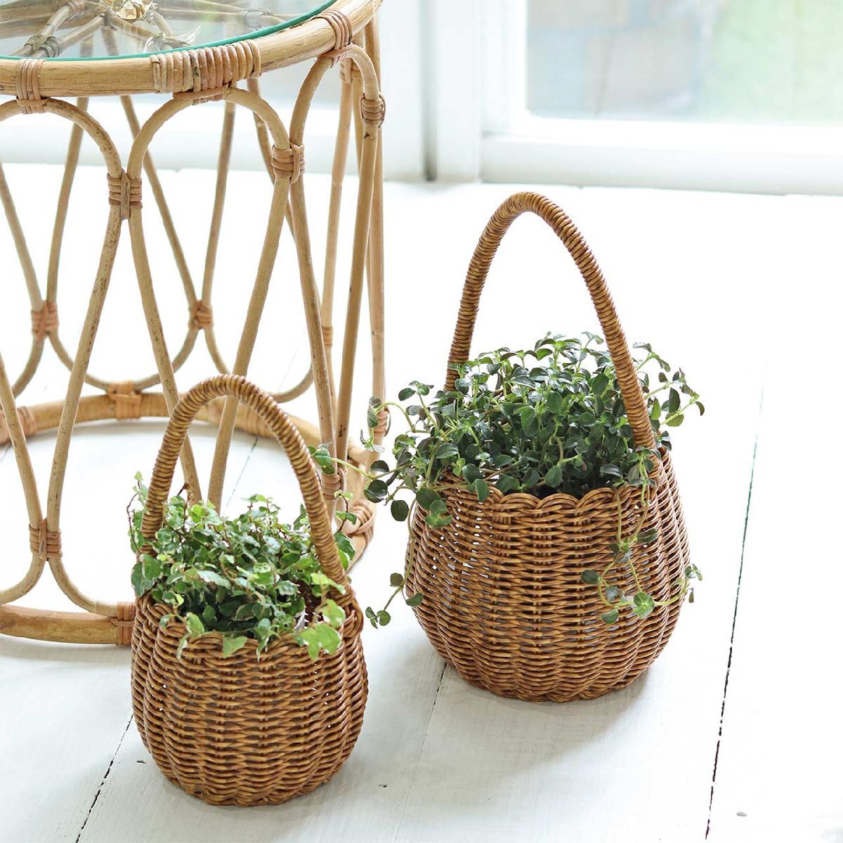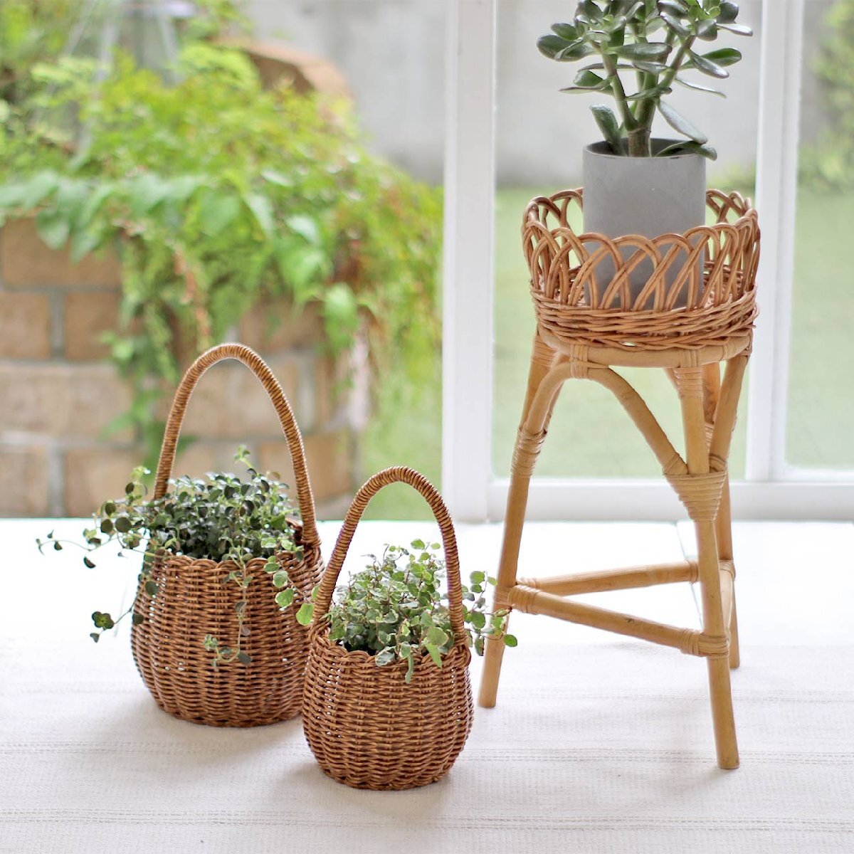 手作業で編まれたポットは素朴な佇まいで、どんなお部屋のインテリアにもよくなじんでくれます。