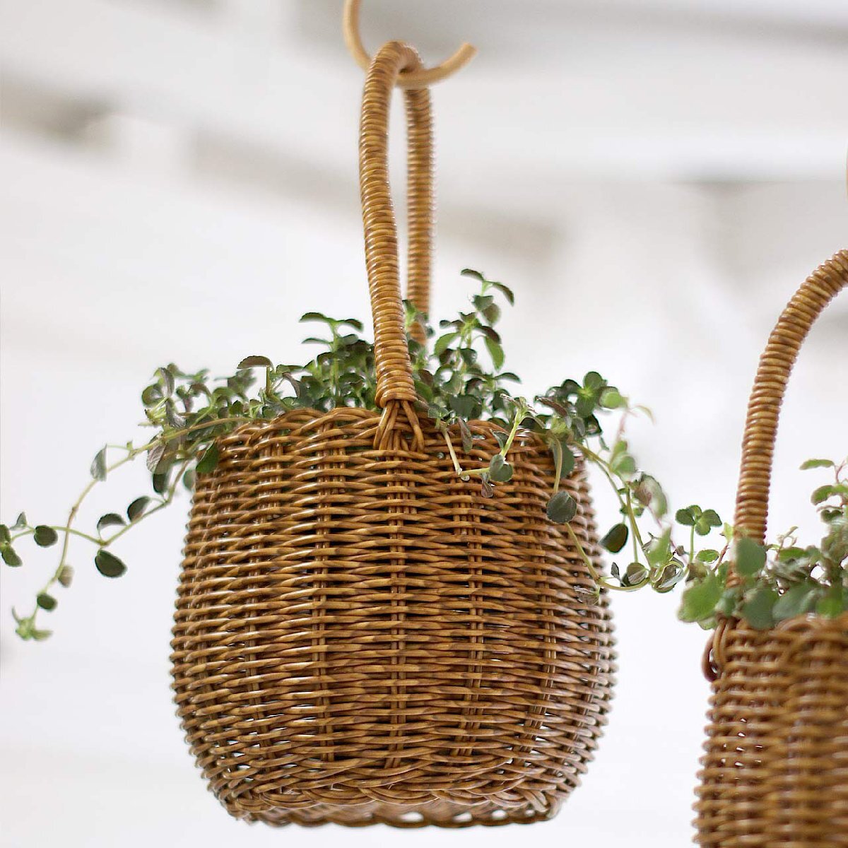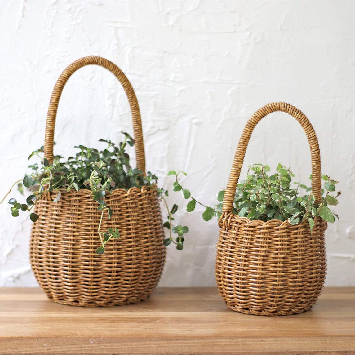 長めのハンドルがついているので、S字フックなどで簡単に吊り下げられます。お部屋にグリーンを飾るのにぴったりです。