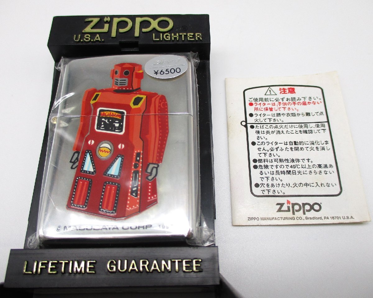 | 商品詳細 ZIPPO ジッポー ブリキロボット MASUDAYA CORP. 【状態】未使用品(長期保管品ですので微細な傷、汚れはご容赦ください。) 【付属品】ケース・修理保証書兼取扱注意書 | ||||