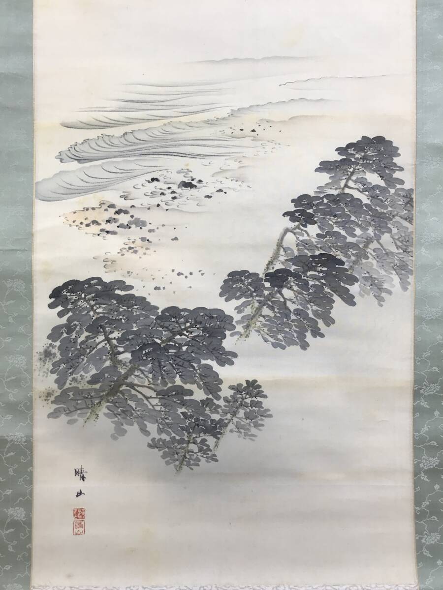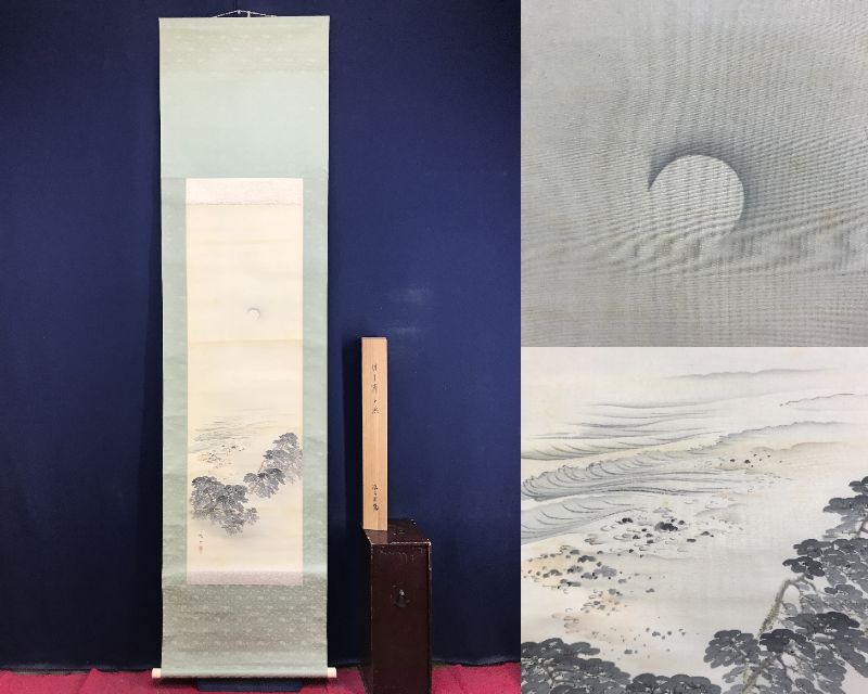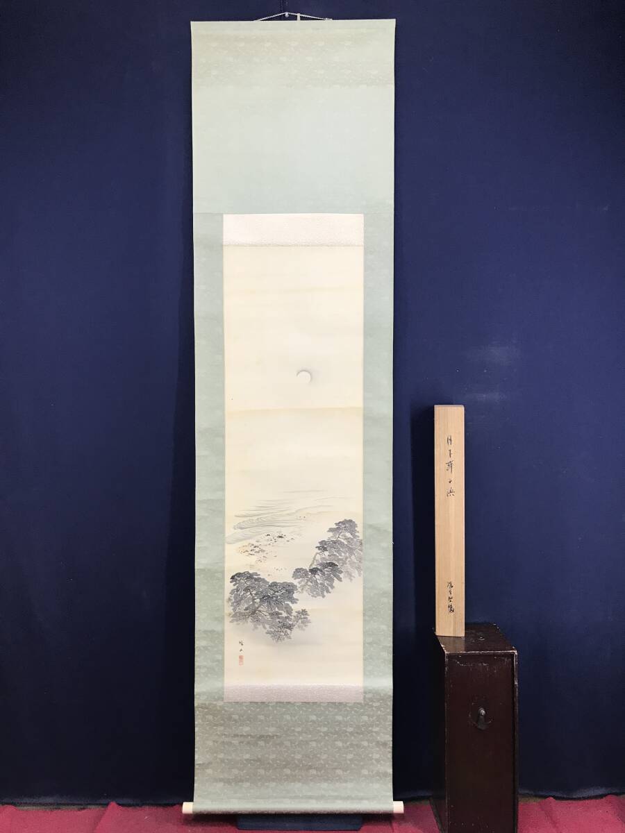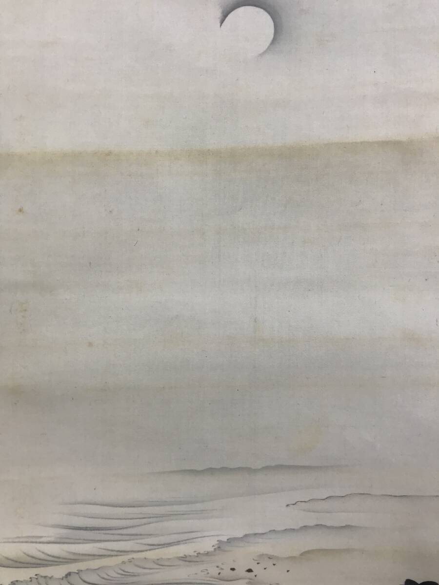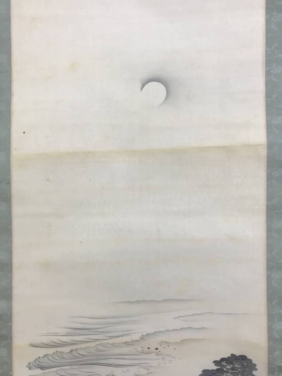 真作/晴山/月下小浜図/海辺図/山水図/掛軸☆宝船☆AG-10