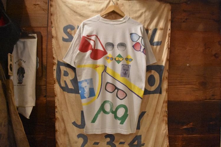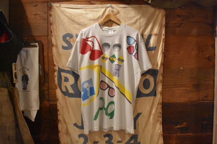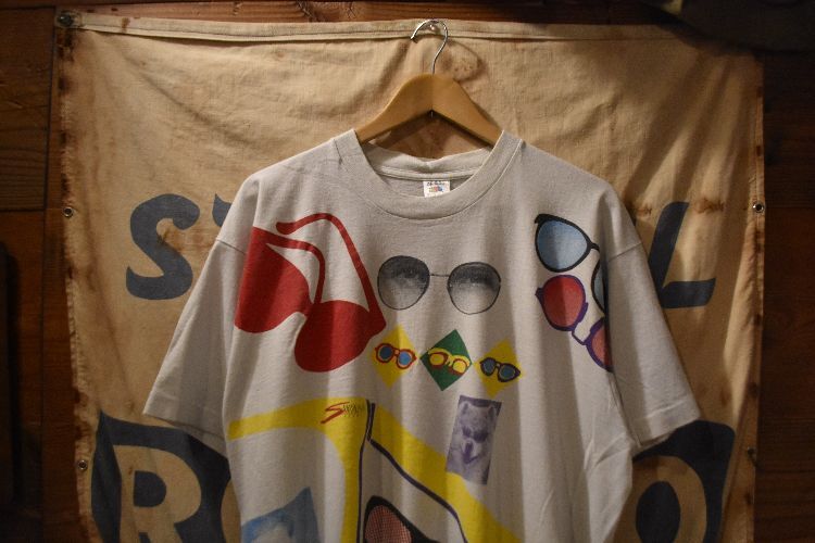 グッドプリント◎90sビンテージFRUIT OF THE LOOMフルーツオブザルーム半袖クルーネック総柄プリントTシャツXL総柄アメカジ眼鏡 n24457