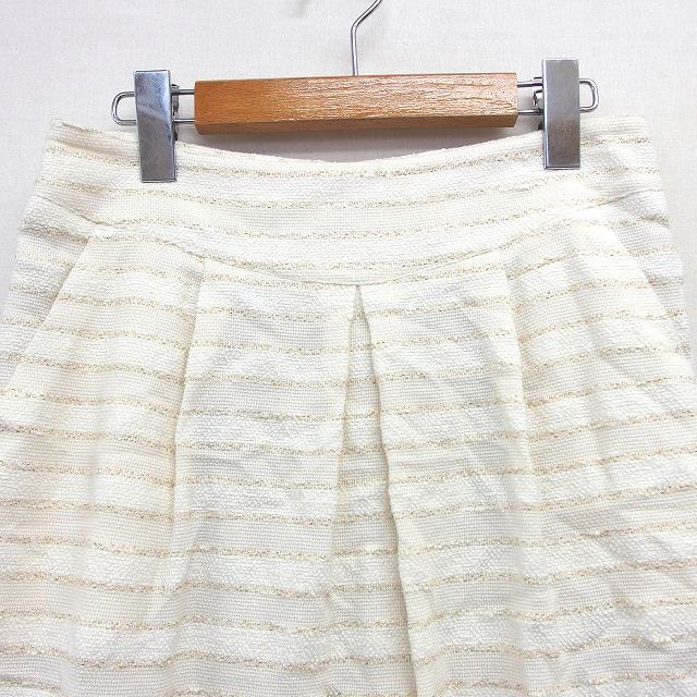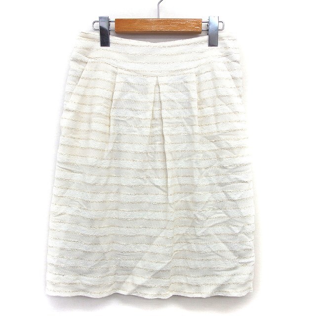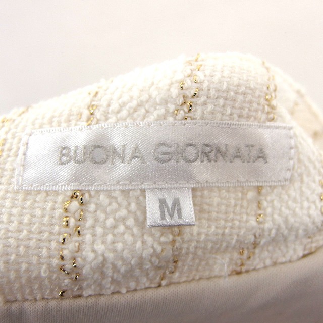 ボナジョルナータ BUONA GIORNATA ツイード スカート 台形 膝丈 ラメ混 タック 綿混 M ライトベージュ /HT20 レディース