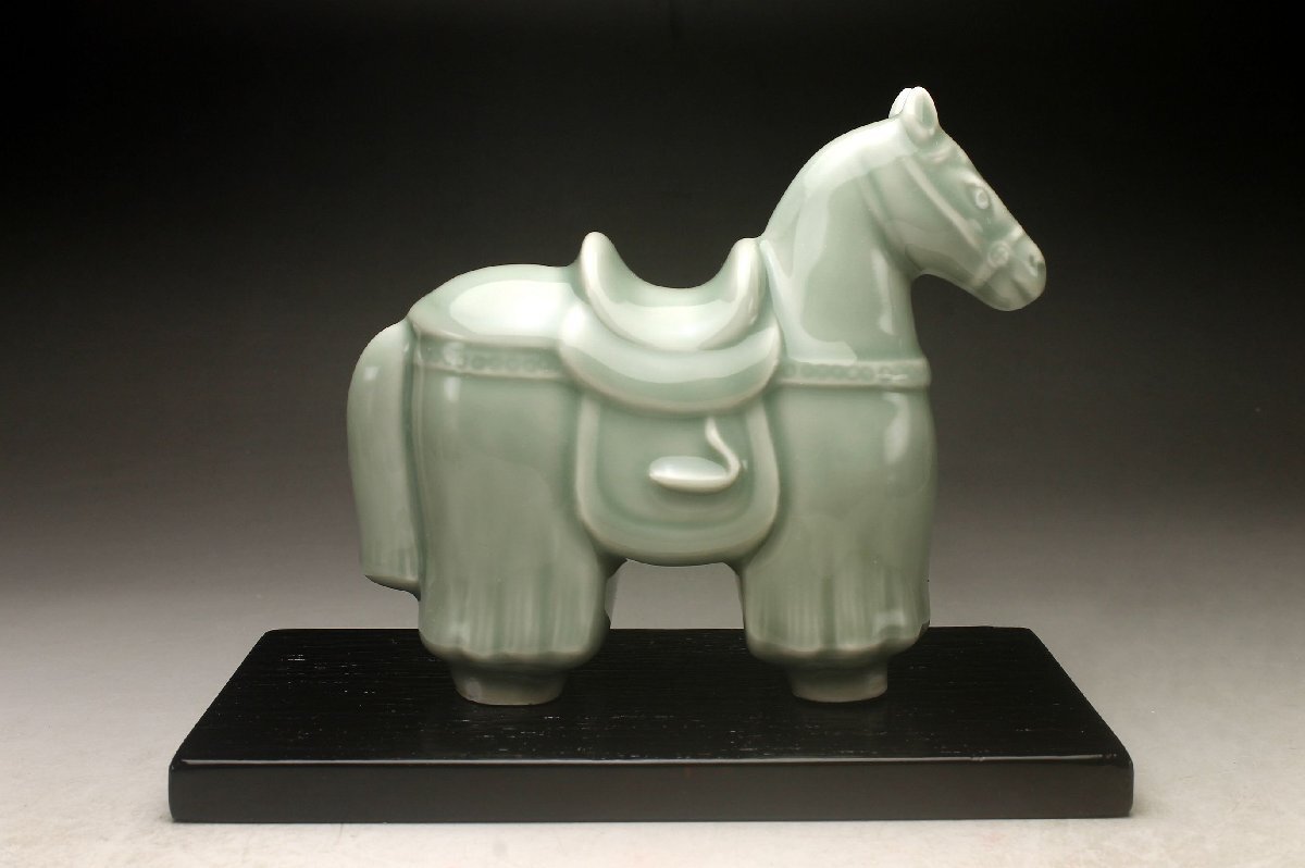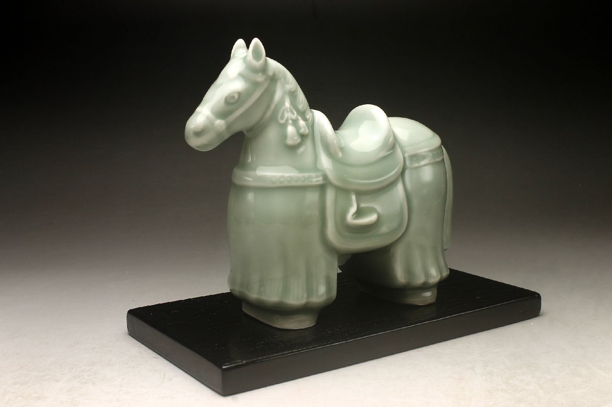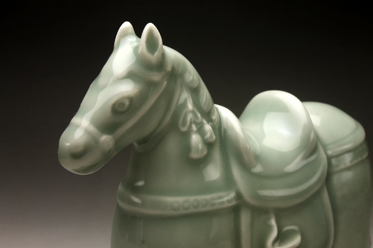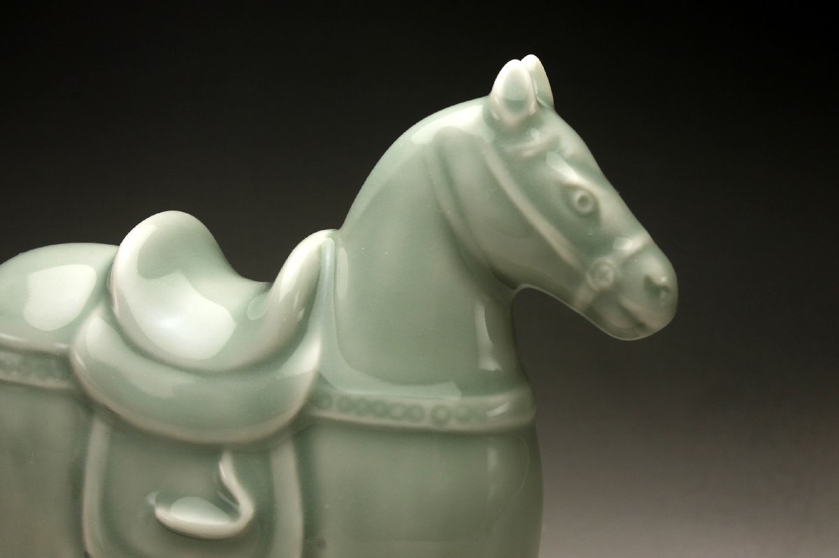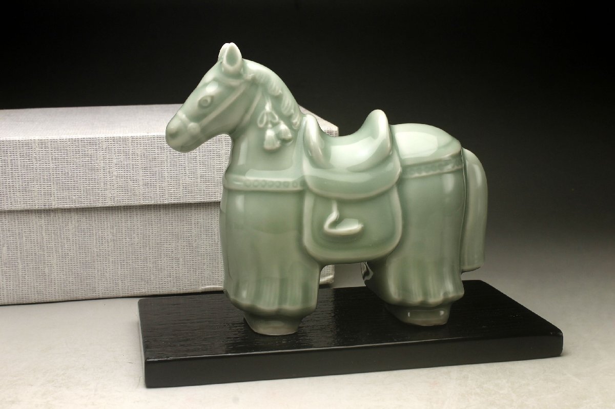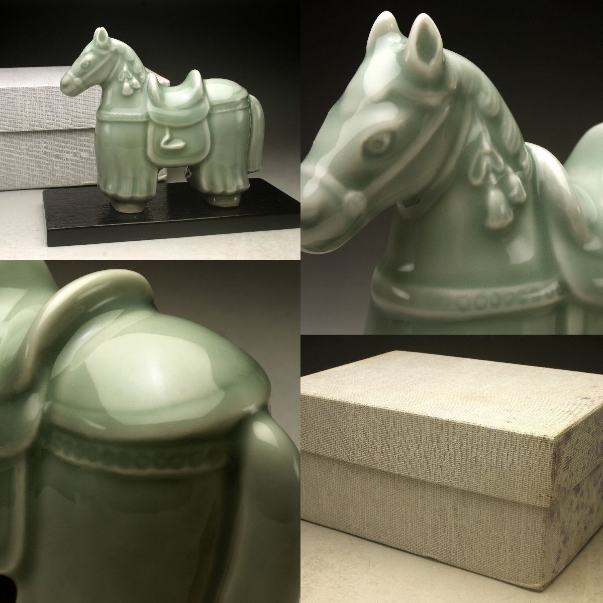 【余韻】 京焼 干支置物 青磁 馬 午★化粧箱 床飾<同梱可>