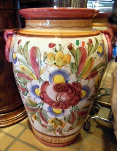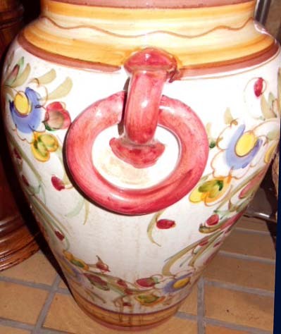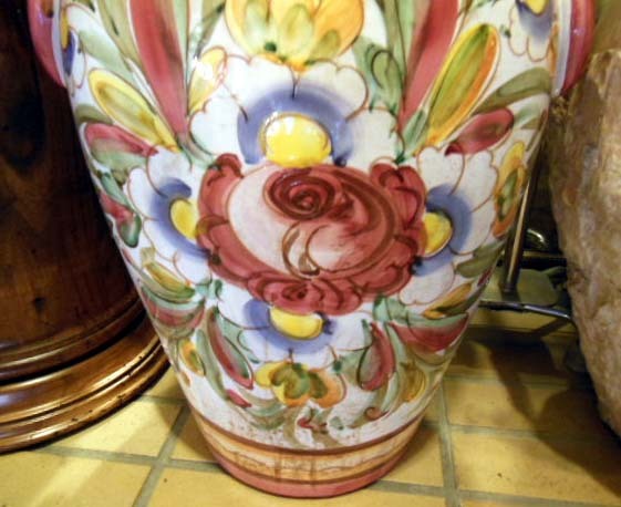 陶器傘立て トールペインティング 手描き柄 フラワー イタリア製 ピンク(IL PONTE製品)